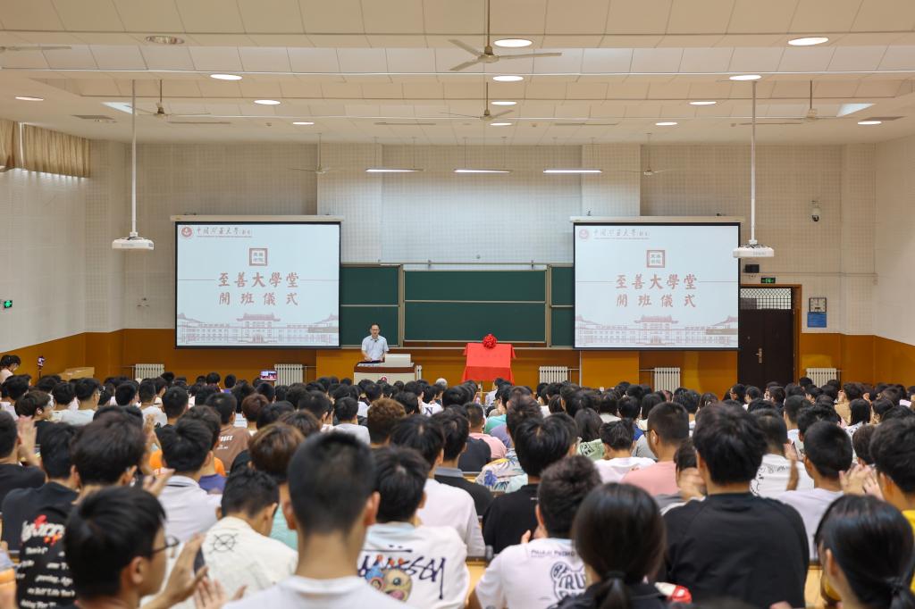 本网讯 9月17日,中国矿业大学(北京)至善书院在沙河校区举行至善大学堂开班仪式暨第一讲。至善书院名誉院长、中国工程院院士武强出席开班仪式并学堂第一讲。校党委副书记安宇,至善书院院长朱红青,应急管理与安全工程学院党委书记杨庆舟,化学与环境工程学院党委书记赵亮、副院长(主持工作)邓久帅,党委宣传部副部长姚利梅,至善书院执行副院长、化学与环境工程学院副院长孙志明,至善书院轮值副院长、应急管理与安全工程学院副处级专职组织员张庆国,化学与环境工程学院副院长王卫东等出席仪式。开班仪式由至善书院执行副院长孙志明主持。至善书院各年级辅导员,2023级全体本科生、2023级硕士及2022级本科生代表共950余名学生分别在主会场和分会场参加活动。