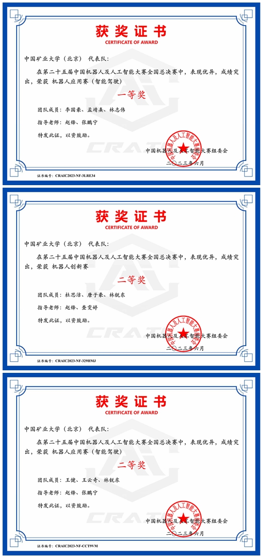 本网讯 近日,第25届中国机器人及人工智能大赛全国总决赛落下帷幕。我校代表队在机器人应用赛(智慧驾驶)中获全国一等奖1项、全国二等奖1项,北京赛区二等奖2项,三等奖1项,机器人创新赛获全国二等奖1项。