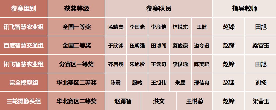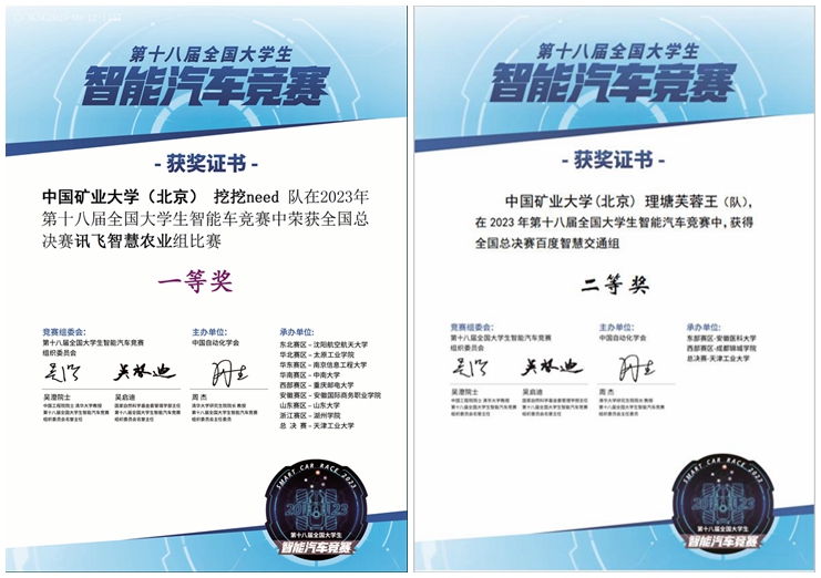 7月17日至19日,第十八届全国大学生智能汽车比赛华北赛区在太原工业学院举行,我校摄像头组代表队和完全模型组代表队均获得华北赛区二等奖。8月1日至5日,第十八届全国大学生智能汽车全国总决赛(讯飞智慧农业组)在苏州举行。我校讯飞智慧农业组代表队获得赛事最高奖项——全国一等奖。8月17日至8月19日,在天津工业大学承办的第十八届全国大学生智能汽车全国总决赛中,我校百度智慧农业组代表队获得全国二等奖。