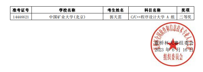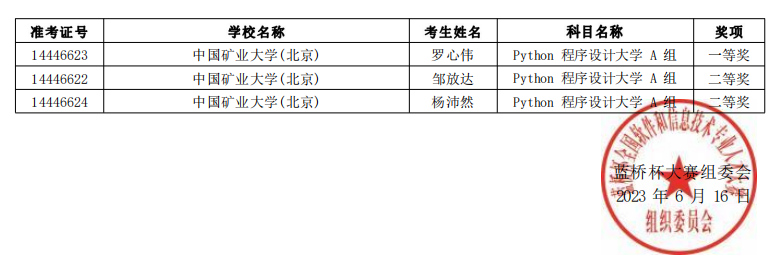 本网讯 近日,第十四届“蓝桥杯”全国软件和信息技术专业人才大赛落幕,今年我校学子在北京赛区比赛中成绩优异,共有56名同学获奖,其中一等奖4名,二等奖15名,三等奖37名。郭天茁、邹放达、罗心伟和杨沛然4位同学代表学校参加全国总决赛,最终,罗心伟同学(指导教师:高文超)荣获全国一等奖,郭天茁、邹放达和杨沛然同学荣获全国二等奖。