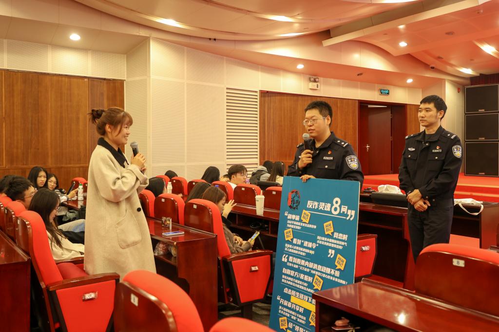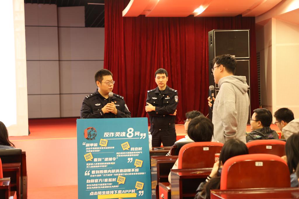 观影前,北京市公安局海淀分局高校内保支队警官刘烨、程长昊,刑侦支队反诈中心警官蔡航莅临现场对师生进行反诈宣传。通过提问互动的方式普及防范电信网络诈骗相关知识,用真实案例讲解电信网络诈骗类型和常用手段,揭露电信网络诈骗的危害,并呼吁大家在观影的同时,要时刻提高防范意识,远离电信网络违法犯罪,切实保障自身生命和财产安全。