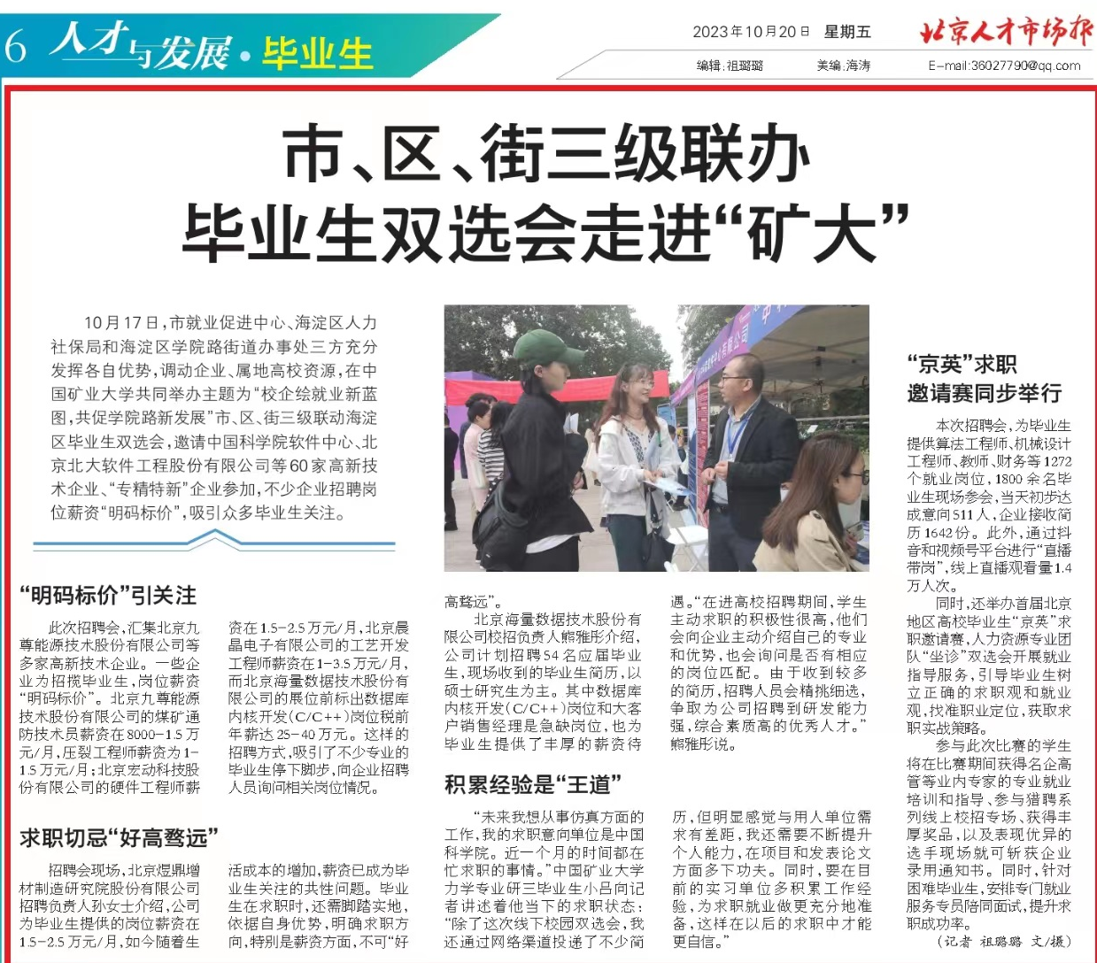 【北京人才市场报】高新技术企业专场招聘会走进“矿大”