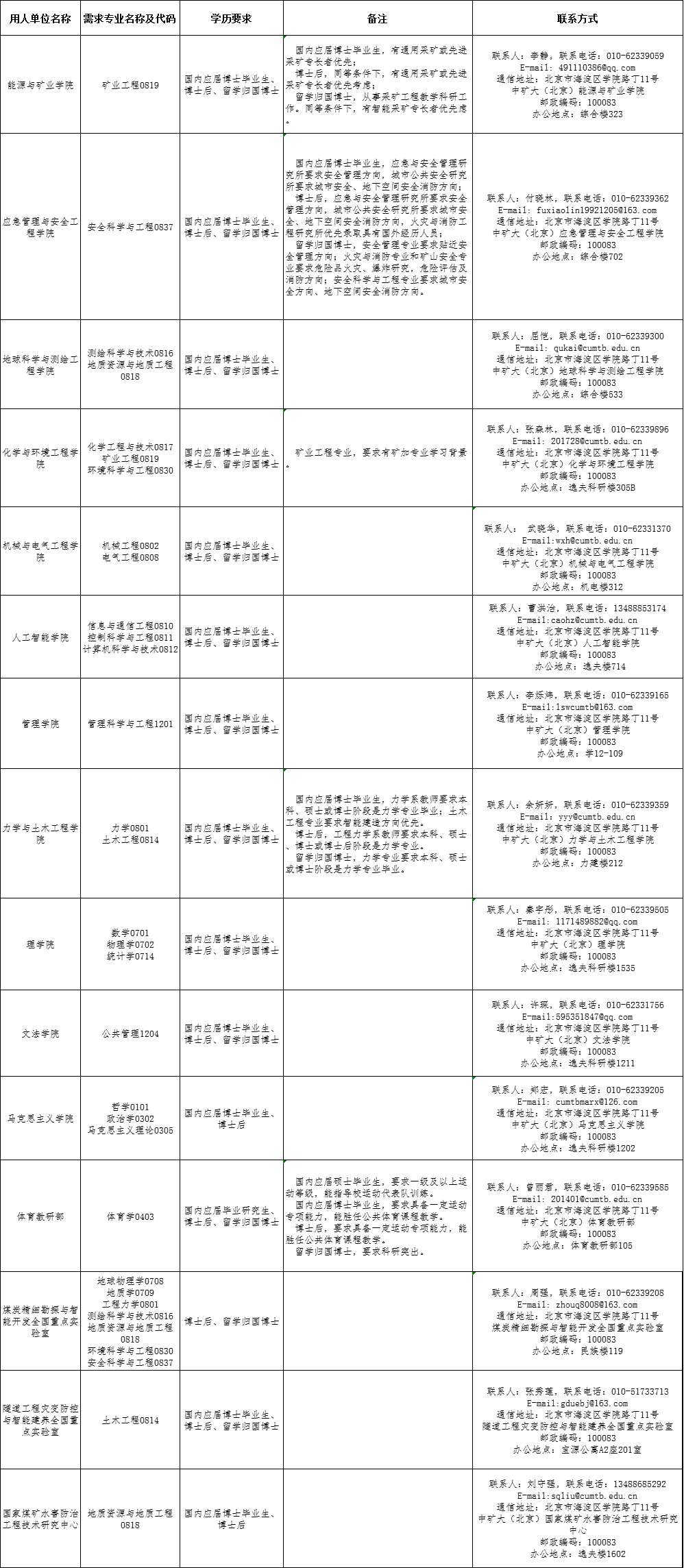 2024年招聘的各类人员主要用于充实专任教师队伍,适量补充辅导员、实验技术人员和教辅其他专业技术人员。专任教师主要接收矿业工程、安全科学与工程、地质资源与地质工程、土木工程、测绘科学与技术、力学、机械工程、电气工程、信息与通信工程、控制科学与工程、管理科学与工程、环境科学与工程、化学工程与技术、计算机科学与技术、数学、统计学、公共管理、思想政治教育、物理学、体育学等学科的优秀人才,具体招聘岗位见《2024年度各类人员招聘信息表》(以下简称《招聘信息表》,附件1)。