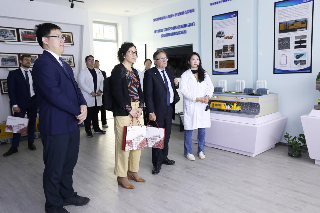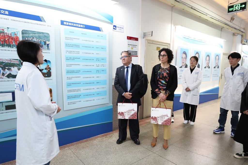 随后,代表团参观了煤炭精细勘探与智能开发全国重点实验室。实验室副主任许献磊教授及优秀研究生代表向代表团一行介绍了实验室的主要研究方向、科研成果以及未来发展规划,代表团对实验室的先进设备和研究成果表示了高度赞赏。