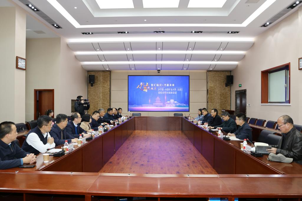崔希民对杨建军一行的到访表示热烈欢迎,并介绍了学校的历史沿革,以及在人才培养、师资建设、学科建设、科学研究等方面取得的成绩,重点介绍了学校在高水平科研平台建设等方面的经验做法。他表示,学校将深入贯彻落实习近平总书记关于深入推进能源革命,加强煤炭清洁高效利用的重要指示精神,发挥在能源和安全领域的办学优势,进一步深化与乡宁县校地合作,加强地方产业需求与高校科研成果对接,助力学科和产业发展。