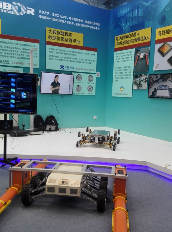 本网讯2016年全国大众创业万众创新活动周(以下简称“双创周”)于10月12日至18日举行。本届“双创周”以“发展新经济、培育新动能”为主题,设立深圳主会场、北京会场,并在全国多地设立分会场。我校能源安全产业技术研究院选派的公共交通侦测麦克纳姆轮机器人和超深探地雷达巡检搜救机器人两个特种机器人科技创新成果,经过上级主管部门的层层选拔,成功亮相双创周北京会展。