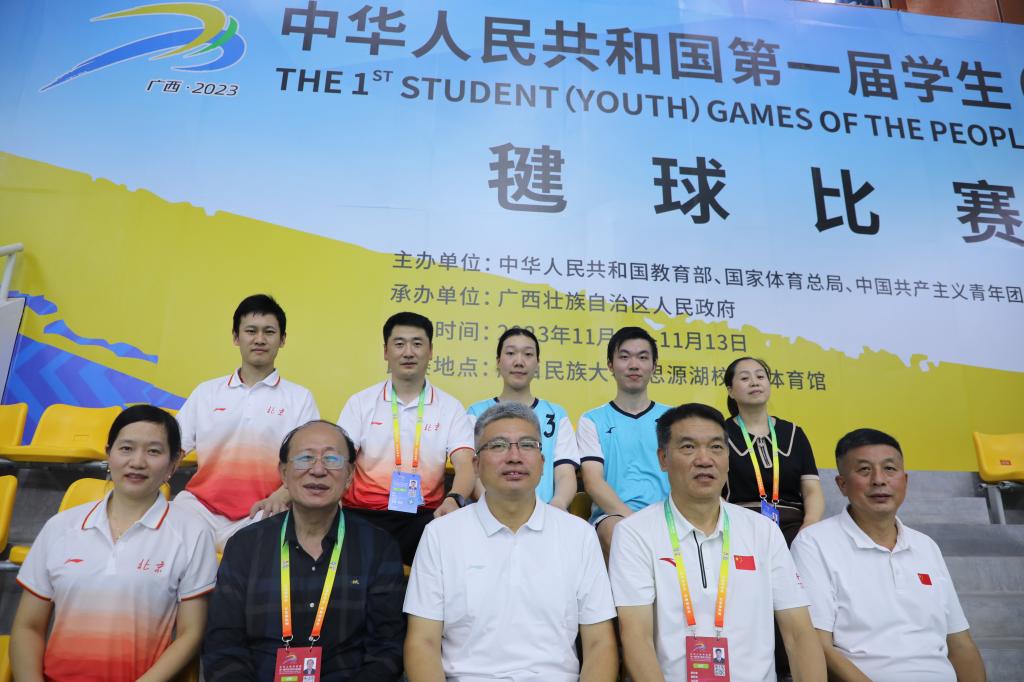 本网讯 由教育部、国家体育总局、共青团中央主办,广西壮族自治区人民政府承办的第一届全国学生(青年)运动会(以下简称“学青会”)于11月5日至15日在广西举行。国务委员谌贻琴出席并宣布开幕,教育部部长怀进鹏致辞。国家体育总局局长高志丹、国务院副秘书长孟扬等出席开幕式。开幕式由广西壮族自治区政府主席蓝天立主持。我校作为牵头单位带领北京代表团大学组毽球队参赛,校党委副书记安宇前往第一届全国学青会现场看望慰问参赛运动员、教练员,并送上慰问品和祝福。