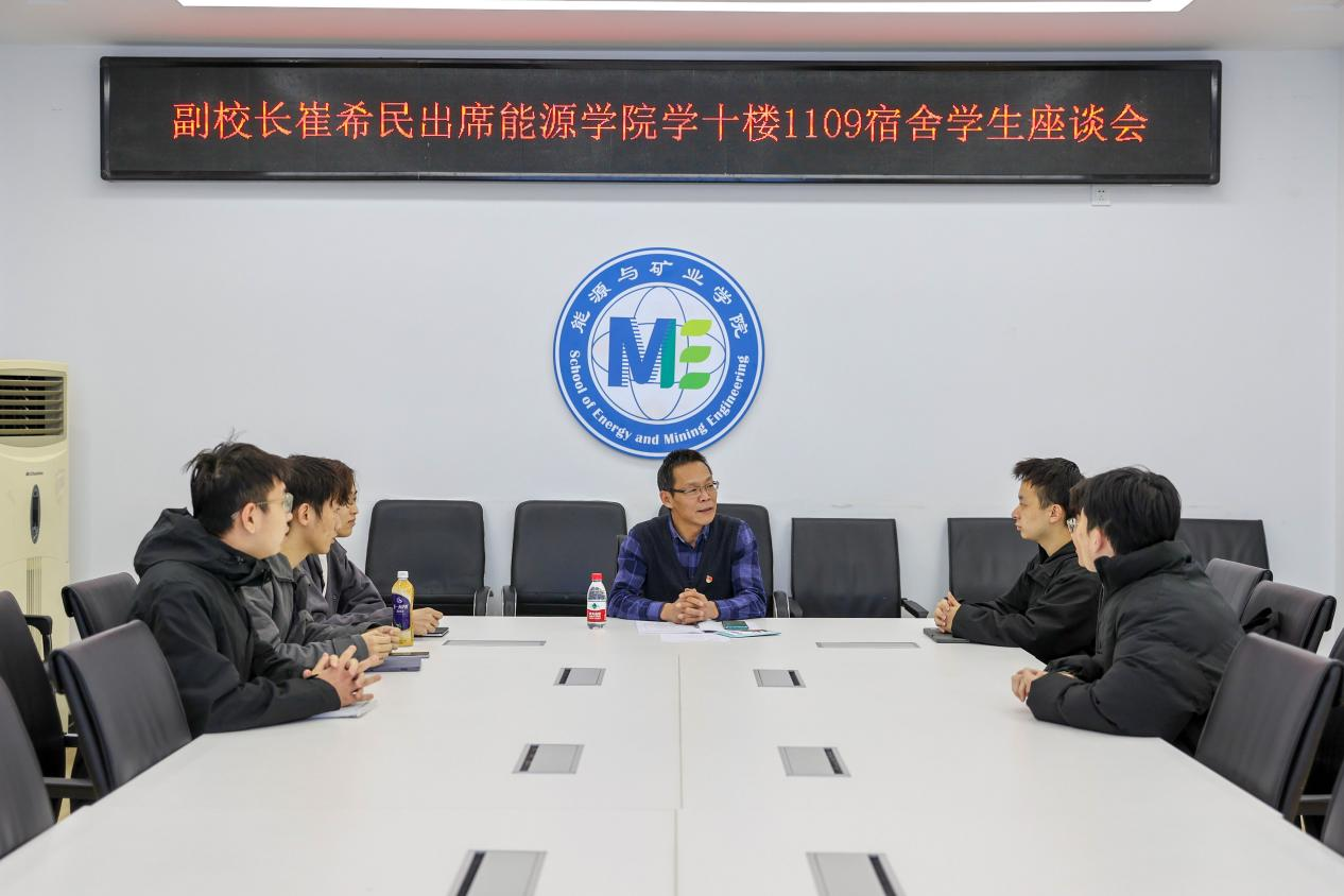 本网讯 为认真落实校级领导干部深入基层联系学生工作,11月10日下午,副校长崔希民与能源与矿业学院学十楼1109宿舍学生在综合楼318开展座谈。会议由宿舍长李桂颖主持。