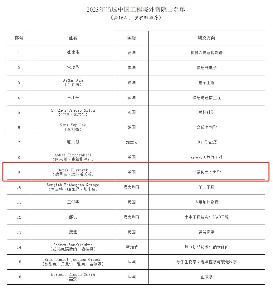 本网讯 11月23日,中国工程院公布2023年院士增选当选外籍院士名单。中国工程院2023年外籍院士增选共选举产生16位中国工程院外籍院士。中国矿业大学(北京)客座教授Derek Elsworth依托我校当选中国工程院外籍院士。校长葛世荣院士为Derek Elsworth的院士增选主提名人。
