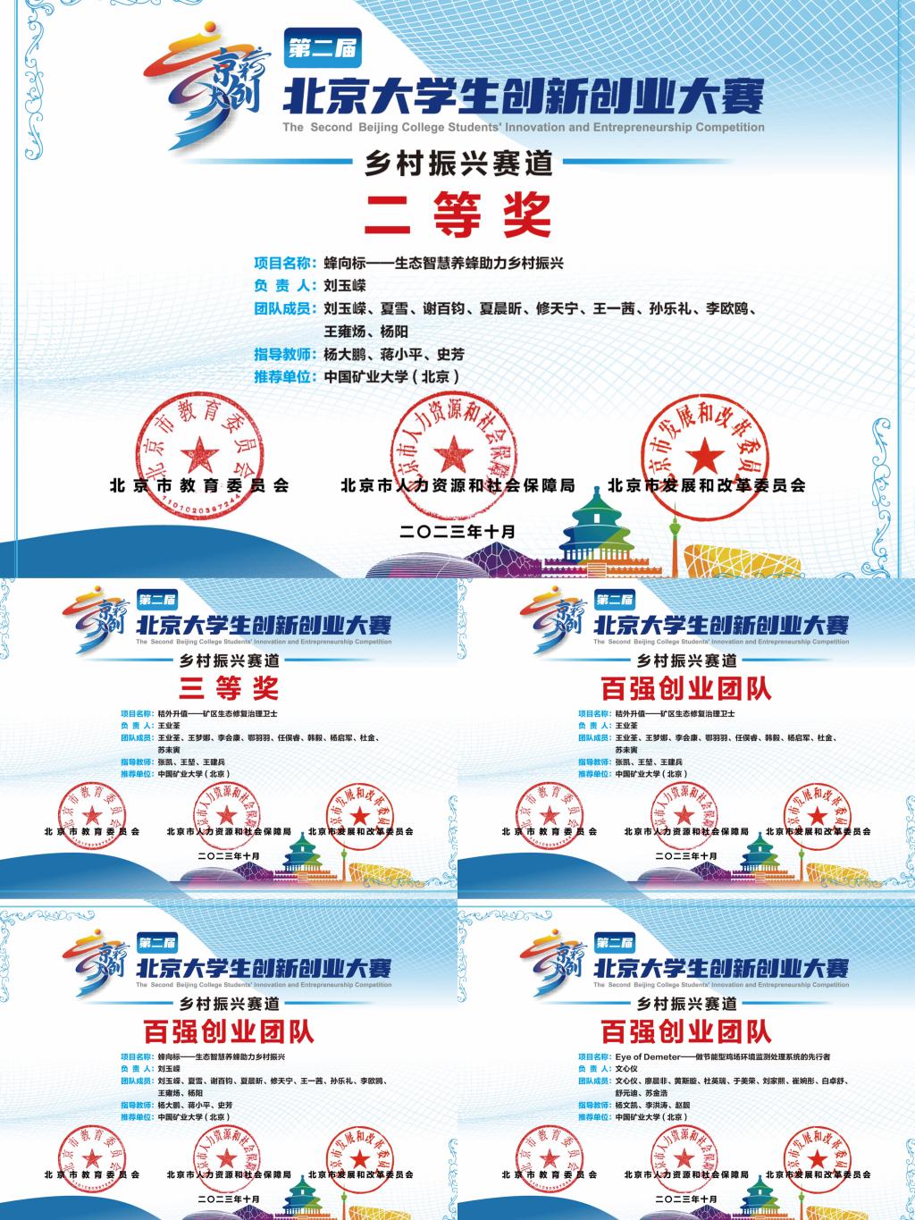 本网讯 近日,由北京市教育委员会、北京市人力资源和社会保障局、北京市发展和改革委员会联合举办的第二届“京彩大创”北京大学生创新创业大赛获奖名单公布。我校《蜂向标-生态智慧养蜂助力乡村振兴》13支团队获得“百强创业团队”称号,在分赛道决赛中获评二等奖团队2支,三等奖团队1支。学校连续两次获得“京彩大创”北京大学生创新创业大赛“最佳组织奖”。