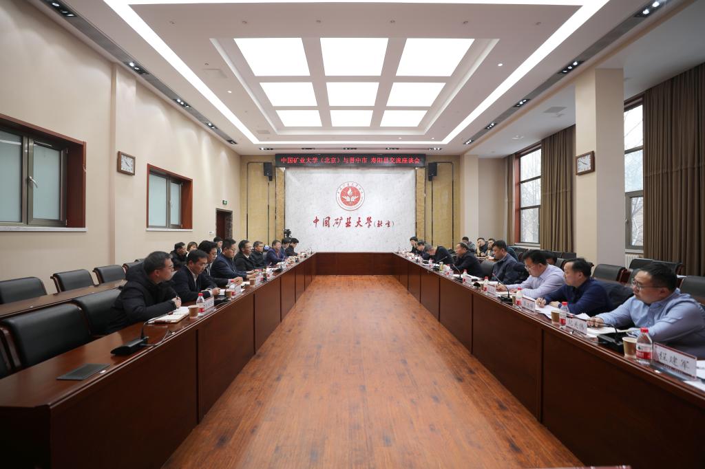 崔希民对晋中市及寿阳县委县政府一行到访表示热烈欢迎。他介绍了学校的历史沿革、学科、科研等基本情况。他表示,学校将贯彻落实“深入推进能源革命”部署安排,与晋中市、寿阳县一道服务国家能源战略需求,集中优势力量,在产学研协同创新、战略决策咨询合作、人才培养等方面开展务实合作,推动科技成果落地转化,共同为保障我国能源安全、推动能源转型升级作出更大贡献。