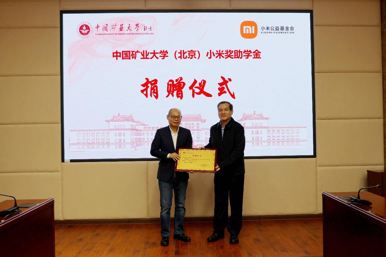 本网讯 12月12日下午,小米奖助学金捐赠仪式在我校一号办公楼举行。校党委书记徐孝民、小米集团副总裁颜克胜出席活动并致辞。对外联络与合作处处长、北京中国矿业大学教育基金会秘书长张利主持捐赠仪式。