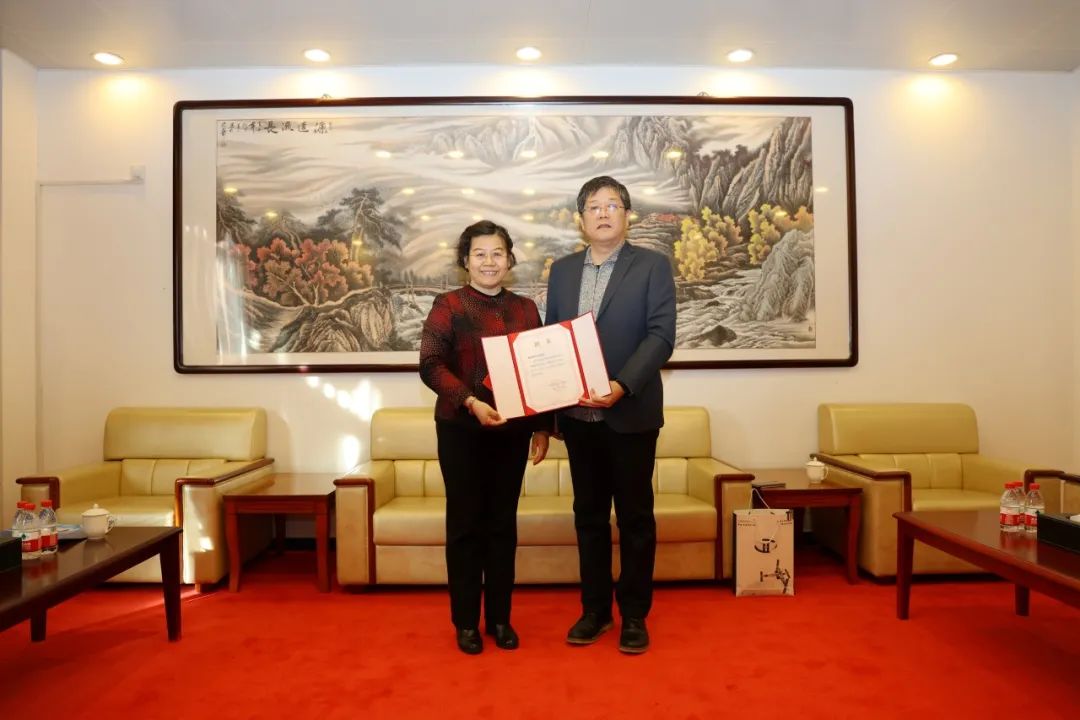 中国矿业大学(北京)党委副书记、纪委书记董晞为北京一零一中矿大分校党总支书记、校长敖雪丹,北京市海淀区上地实验小学党委书记、校长毛向军,颁发马克思主义大讲堂特聘教学名师聘书。
