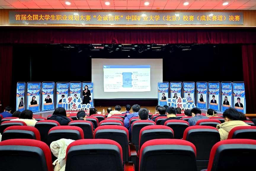 本网讯 12月27日和12月28日下午,由学生工作处主办的首届全国大学生职业规划大赛“金诚信杯”中国矿业大学(北京)校赛(成长赛道)(就业赛道)决赛分别在沙河校区教1-125室和学院路校区民族楼234室举行,经过院级初赛层层选拔,26名成长赛道选手和13名就业赛道选手脱颖而出晋级校赛决赛。校党委副书记安宇出席活动,学工处、校团委、各学院、各书院负责老师应邀参加活动。同时,本届大赛也特别邀请了知名企事业单位的领导、专家和校友担任大赛评委,辅导员代表以及近200余名学生现场观看了比赛。