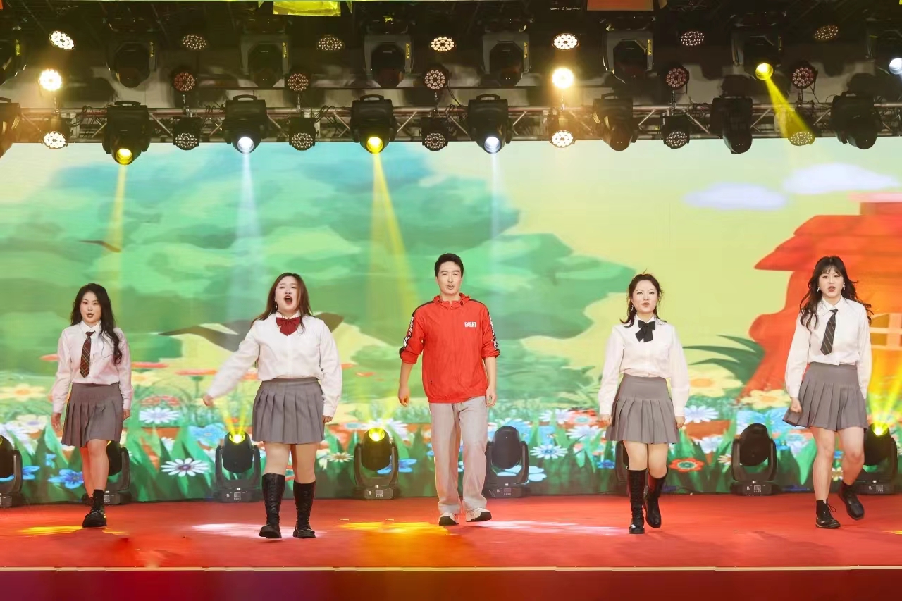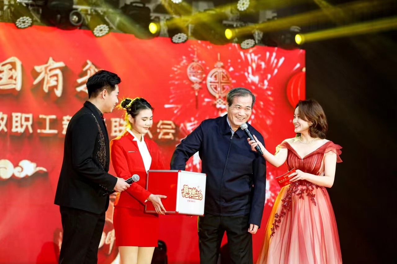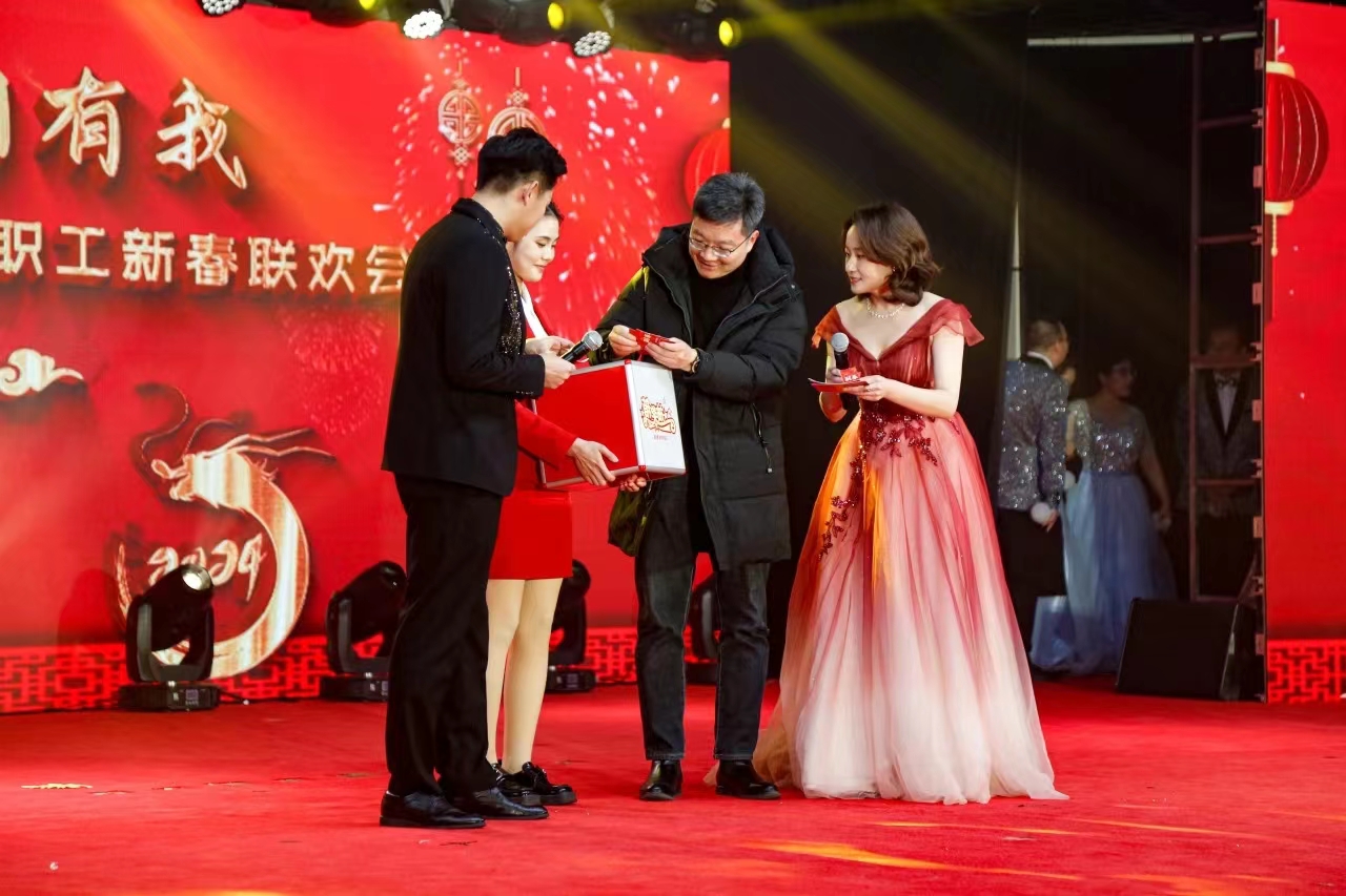 晚会以“躬耕教坛 强国有我”为主题,通过舞蹈、歌曲、朗诵、相声、小品、合唱、器乐演奏等多种形式,共同回首砥砺奋进的2023年,展望充满希望的2024年。校领导现场抽取幸运观众,为教职工送上新年祝福。