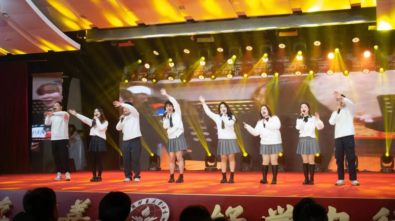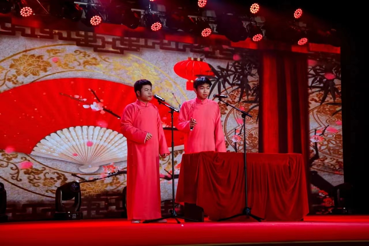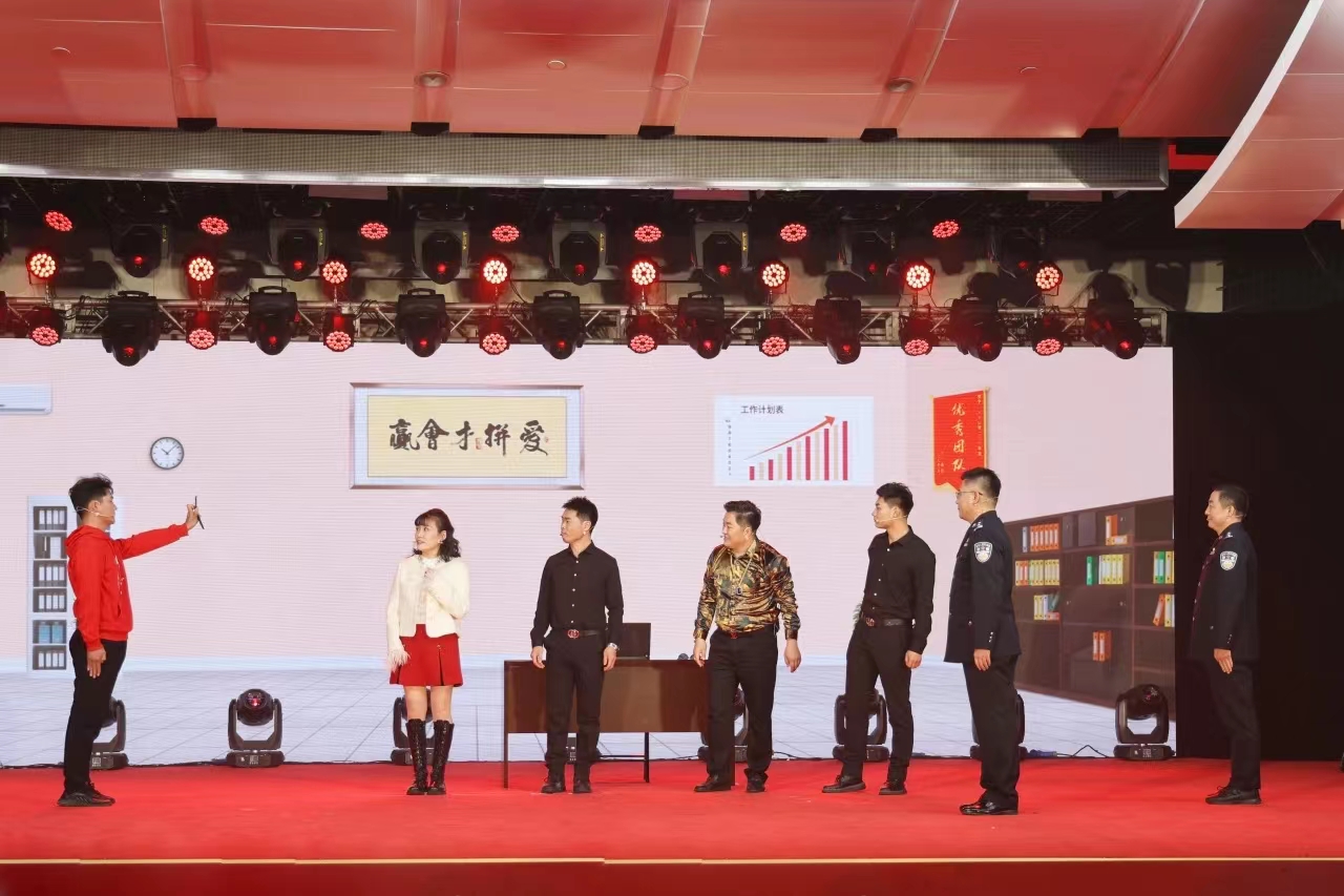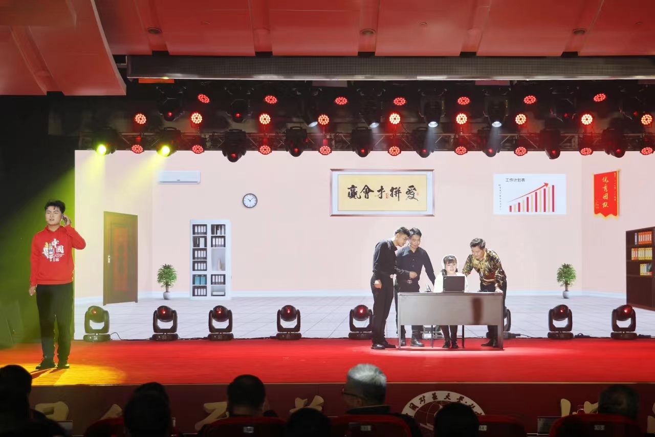 晚会以“躬耕教坛 强国有我”为主题,通过舞蹈、歌曲、朗诵、相声、小品、合唱、器乐演奏等多种形式,共同回首砥砺奋进的2023年,展望充满希望的2024年。校领导现场抽取幸运观众,为教职工送上新年祝福。