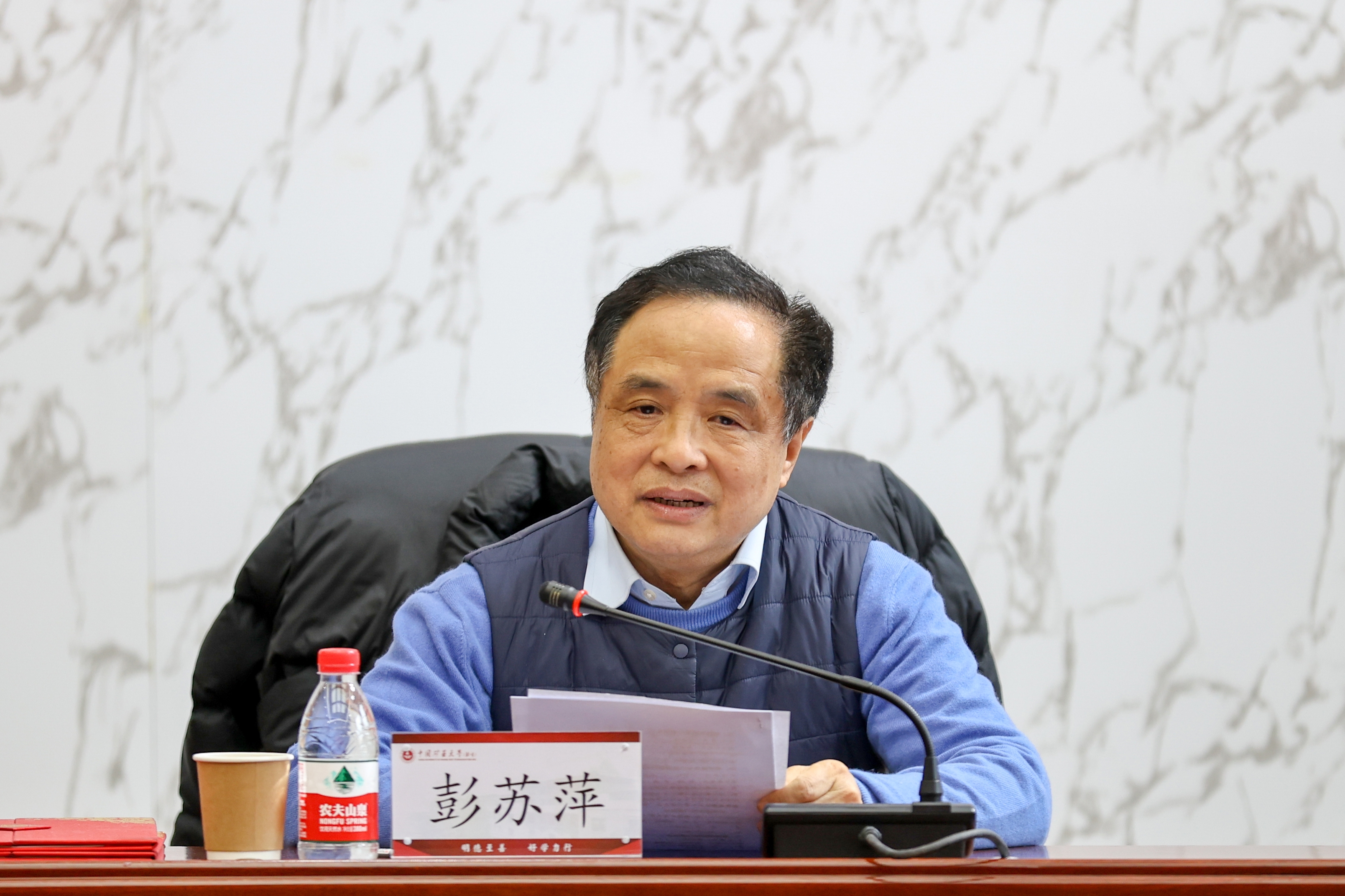 第五届学术委员会主任委员彭苏萍在讲话中感谢学校领导和各位委员的信任。他表示,作为新一届学术委员会主任委员,深感使命光荣,责任重大,将在学校党委和行政的领导下,严格遵守《中国矿业大学(北京)章程》《中国矿业大学(北京)学术委员会章程》的规定,履职尽职,进一步凝聚共识,充分发挥学术委员会在学校学术事务中的重要作用,为早日建成世界一流能源科技大学做出新的贡献。