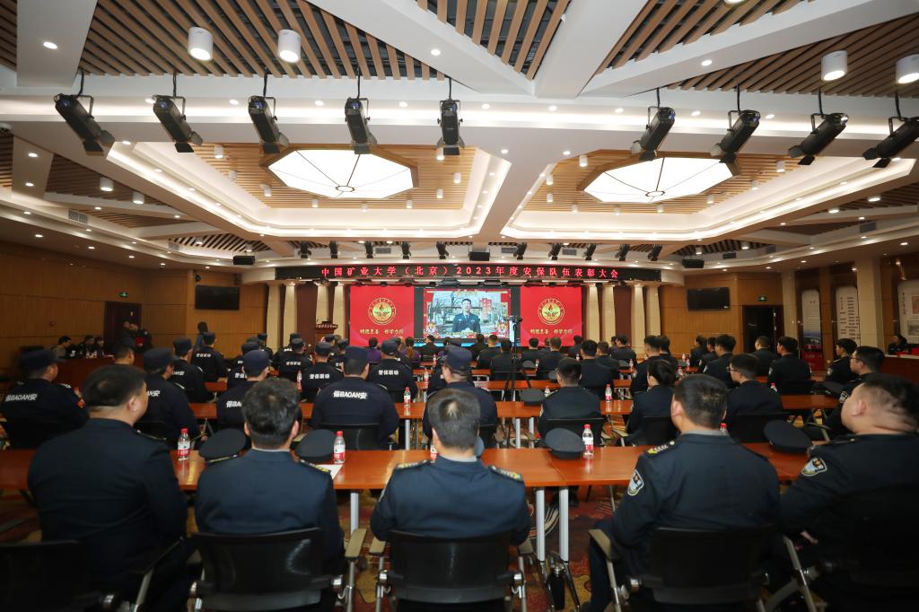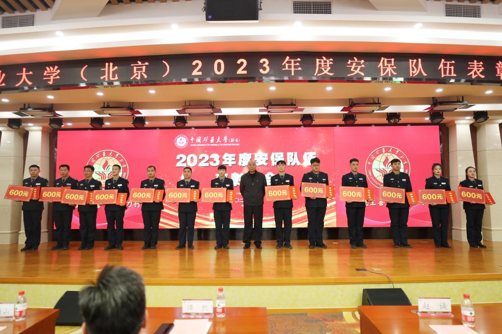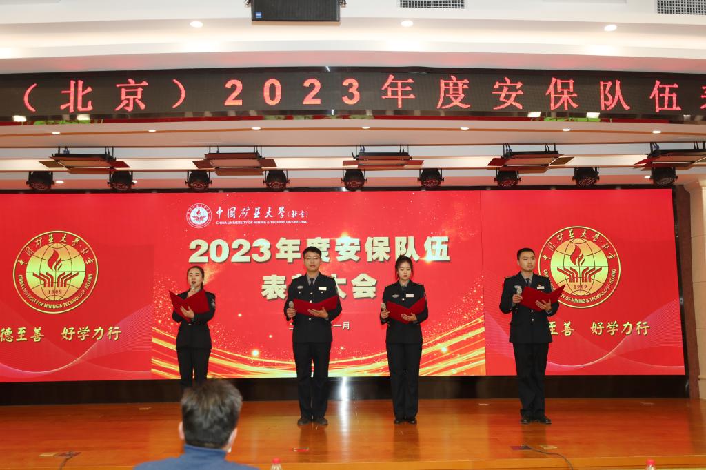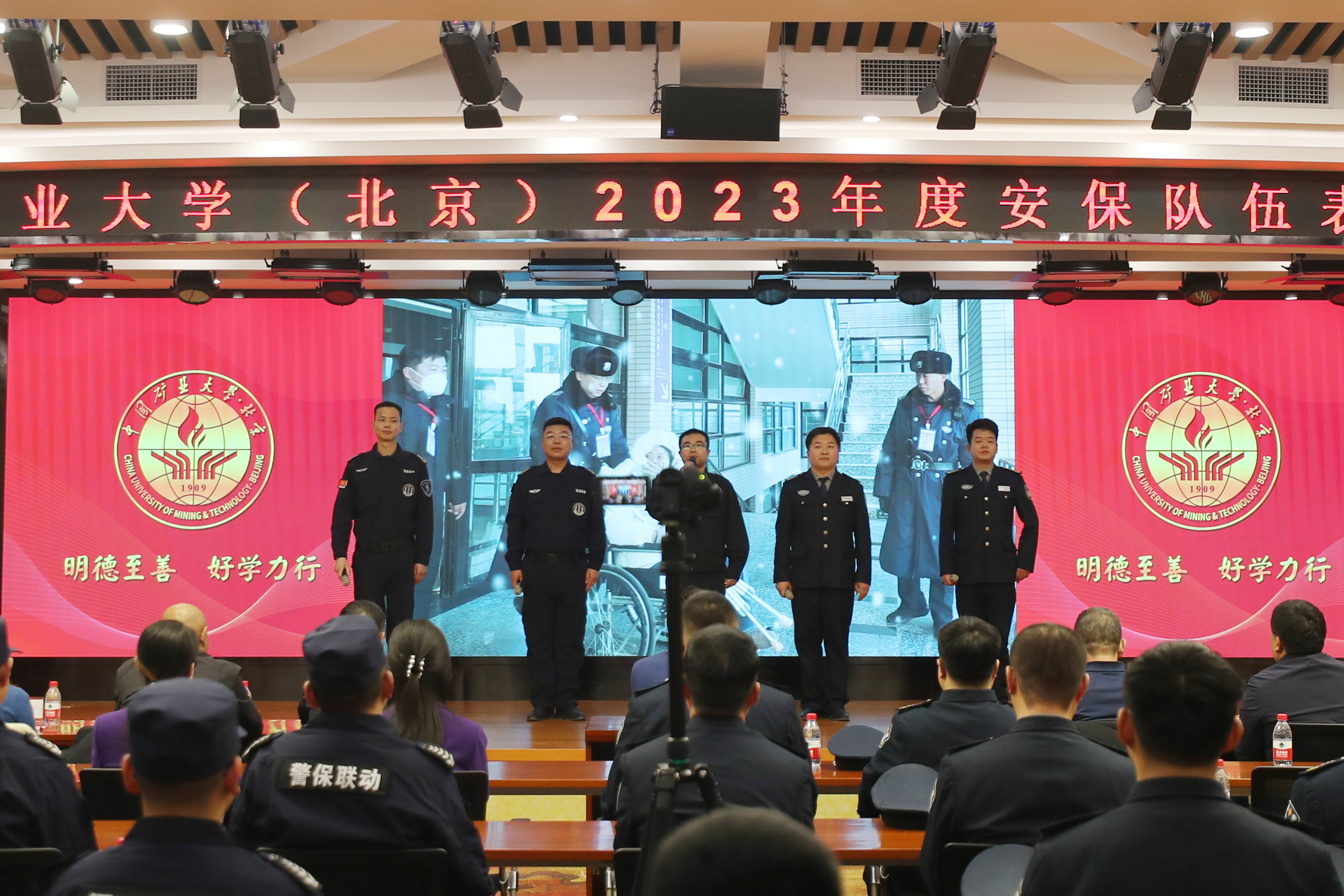 优秀保安员代表向文峰、郭梵桥发言。他们表示,中国矿业大学(北京)是全体安保人员的第二个家,守护好学校的每一名师生、每一个角落、每一寸土地都是安保人员应尽的职责。2024年,全体安保人员将继续扎实工作,不断提高自身综合素质,加强团结协作,发挥合力作用,共同营造安全稳定文明的校园环境。