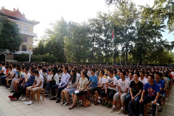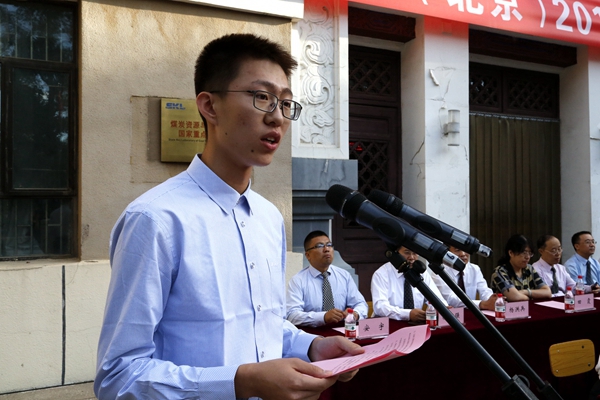 新生代表、机电学院张晓同向新同学倡议:牢记校风,严守校规,充实心灵,提高修养,弘扬矿大的优良传统,用智慧和勇气去开拓进取,去描绘青春,去书写中国矿业大学(北京)新的辉煌!