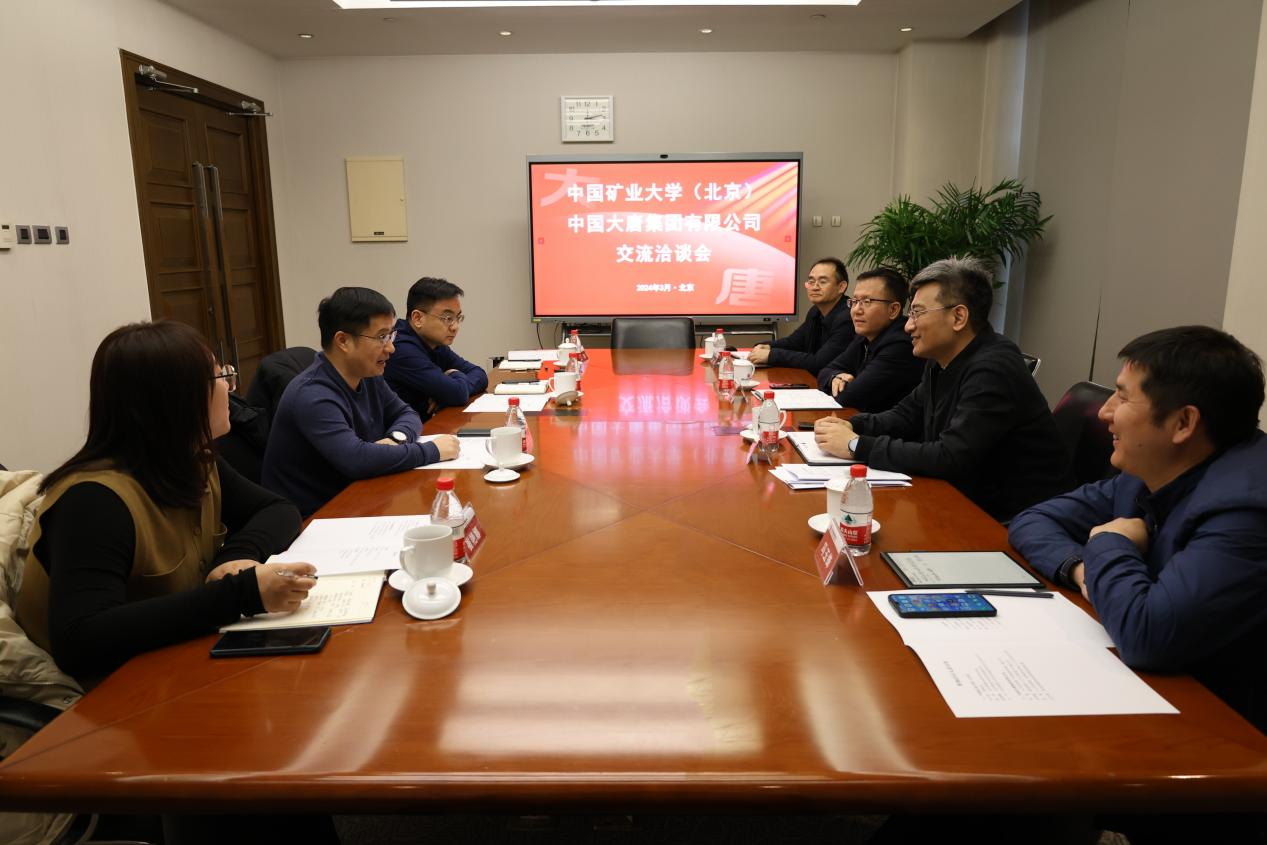 金刚对汪文生一行到访表示欢迎,对学校百余年的发展历程和丰硕成果表示由衷赞赏,并介绍了企业经营情况。他表示,矿大(北京)理事会是推动能源行业高质量发展的重要平台,与高校保持长期紧密合作是大唐集团创新发展的重要抓手。希望校企双方在前期良好合作基础上,创新产教融合机制,在矿山智慧化建设及煤炭扩能增效,电力生产模式转型升级与降本增效,科技人才、成果产出与提质增效等方面深化务实合作,共同服务好国家重大战略和区域经济社会发展。