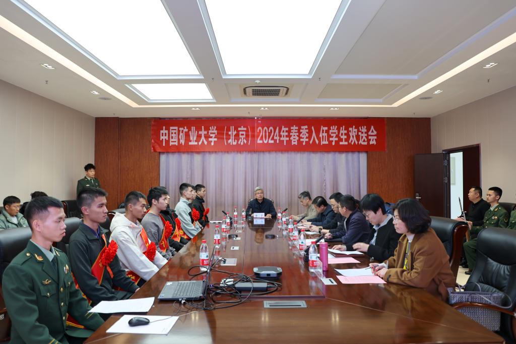 本网讯 3月8日下午,我校2024年春季入伍学生欢送会在沙河校区办公8号楼201会议室举行。校党委副书记安宇出席会议并讲话。化学与环境工程学院党委副书记尹娟,力学与土木工程学院党委副书记项丽娜,保卫处副处长刘国丰,党委学生工作部、党委武装部副部长胡欣、童军武,相关学院辅导员,8名入伍学生以及预征队教官参加了会议。会议由党委武装部部长赵麟主持。