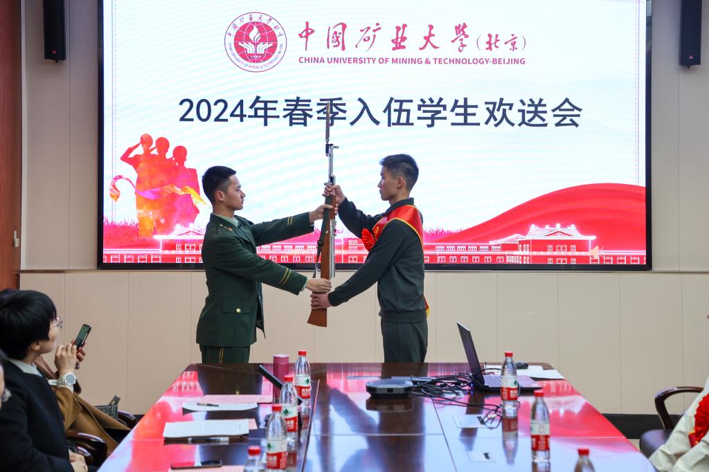 会上,校党委副书记安宇代表学校师生向光荣入伍的同学们表示热烈祝贺。他指出,大学生应征入伍,是党和国家的号召,是国家安全的需要,是实现中国梦、强军梦和中华民族伟大复兴的需要,也是每一位青年学子的义务和责任。同学们响应国家号召,怀揣着对祖国的热爱和对未来的憧憬,选择投身军营,展现出了矿大学子的使命担当和爱国情怀。他对入伍新兵提出三点希望:一是要珍惜荣誉,牢记使命。珍惜参军这份崇高的荣誉,牢记学校和父母的嘱托,不忘初心,牢记保家卫国的使命;二是要遵规守纪,奋发图强。严格遵守部队的条令条例,服从命令,听从指挥,乐于吃苦,勇于奉献,以争先进、创一流的精神状态积极投身于丰富多彩的军营生活中;三是要练好本领,报效祖国。努力适应部队的生活环境,尽快完成从学生到军人的转变,从本职工作做起,干一行、爱一行、精一行,苦练本领,报效祖国。