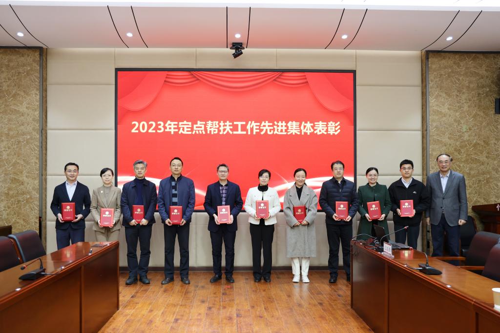 会议表彰了2023年定点帮扶工作先进集体和先进个人。学校乡村振兴工作办公室主任李建伟报告了学校2023年乡村振兴工作情况和2024年工作计划。先进集体代表工会常务副主席刘岩,先进个人代表继续教育学院院长、第五任都安挂职干部杨向东作交流发言。