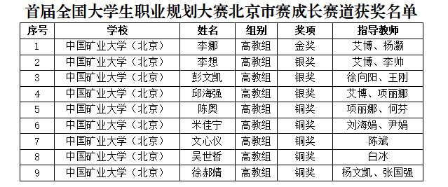 我校在首届全国大学生职业规划大赛北京市赛中荣获2金6银13铜
