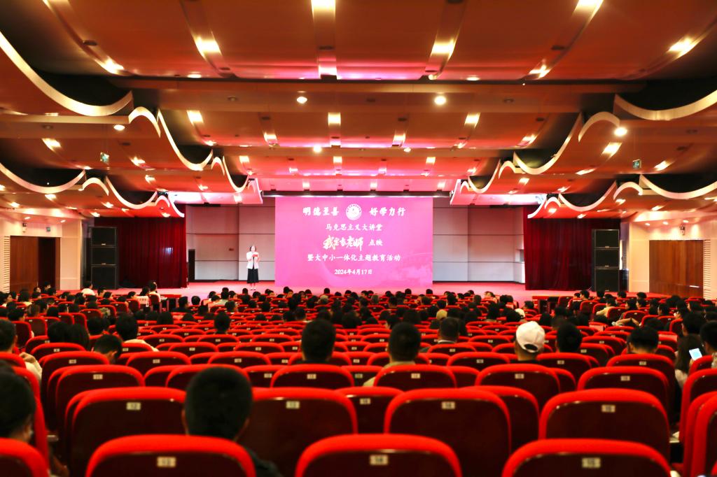 本网讯 为深入贯彻落实习近平总书记在学校思想政治理论课教师座谈会上的重要讲话精神,积极推动大中小学思政课一体化建设,构建大思政工作格局,4月17日下午,中国矿业大学(北京)马克思主义大讲堂《我要当老师》点映专场暨大中小一体化主题教育活动在科技会堂举行。