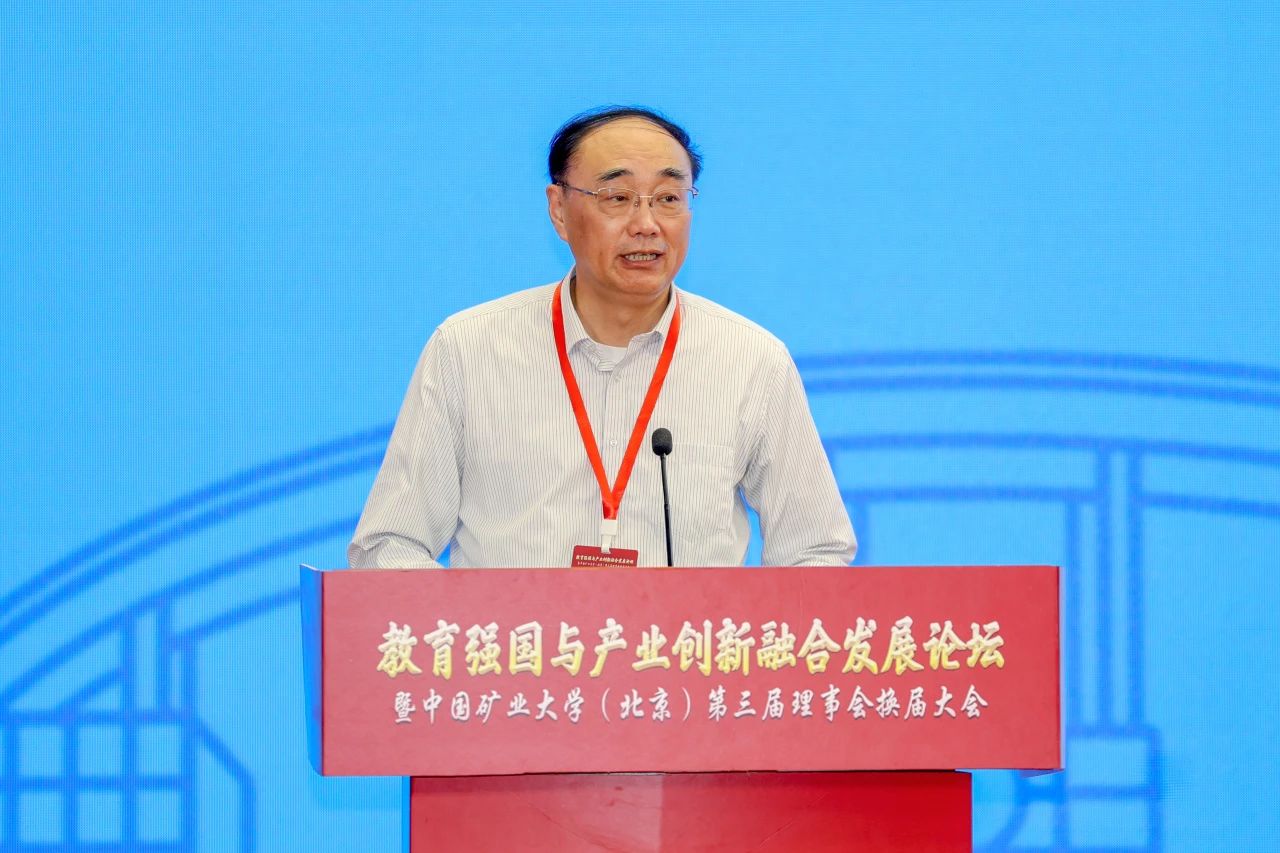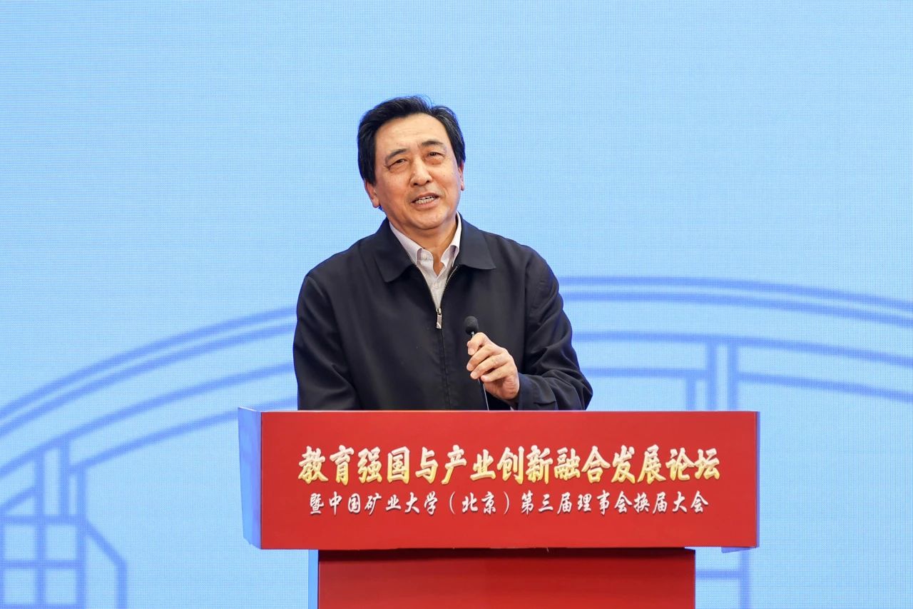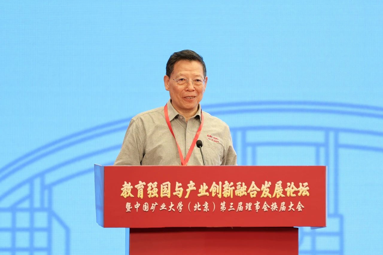 本网讯 4月18日上午,教育强国与产业创新融合发展论坛在北京举办,论坛由中国矿业大学(北京)主办。中国安全生产协会会长赵铁锤,中国煤炭工业协会党委书记、副会长李延江,中国教育发展基金会秘书长王建光,中国煤炭教育协会理事长李增全,中国安全生产科学研究院党委副书记、院长周福宝,中国矿业大学(北京)党委书记徐孝民,中国矿业大学(北京)校长、中国工程院院士葛世荣,中国科学院院士、中国矿业大学(北京)何满潮教授,中国工程院院士、中国矿业大学(北京)武强教授,国能准能集团有限责任公司党委书记、董事长杜善周,兰州兰石集团有限公司党委书记、董事长郭富永,山西省地质勘查局局党组副书记、副局长(正厅长级)王学军,中国矿业大学(北京)在京校领导刘波、崔希民、安宇、汪文生、魏名山,中国石油天然气集团有限公司、中国华能集团有限公司、国家能源投资集团有限责任公司、中国铝业集团有限公司、中国五矿集团有限公司、中国节能环保集团有限公司、中国中煤能源集团有限公司、中国煤炭科工集团有限公司、中国有色矿业集团有限公司、矿冶科技集团有限公司、中国信息通信科技集团有限公司、中国煤炭地质总局等138家理事单位代表200余人出席会议。中国矿业大学(北京)副校长崔希民主持。