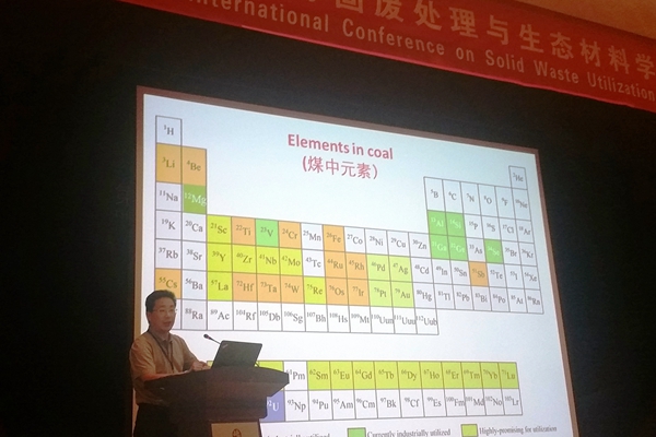 开幕式后,国内外固废领域的专家、学者、企业家对各类固废的资源化利用作了精彩报告。徐德龙院士作了报告“推动绿色制造,建设绿色家园”、日本东京大学Noguchi教授作了报告“混凝土与非铁基矿渣在混凝土结构中的再生利用”,韩国公州大学Kim教授作了报告“快速空冷制备钢渣基快硬水泥”,我校代世峰教授代表校方作了报告“煤型稀有金属矿床”,同济大学赵由才教授作了报告“中国固废处理技术25年”,上海环境卫生工程设计院张益院长作了报告“我国垃圾焚烧发展及展望”、北京低碳清洁能源研究所“千人计划”专家卓锦德博士作了报告“粉煤灰分级利用的思路与发展”、北京科技大学倪文教授作了报告“尾矿的高附加值、大宗创新利用”、国家能源高铝煤炭开发利用重点实验室主任孙俊民作了报告“粉煤灰资源化利用与循环经济”、北京宝贵石艺科技公司董事长张宝贵作了报告“维护生态环境——变废料为原料是一条路”等大会主旨学术报告。