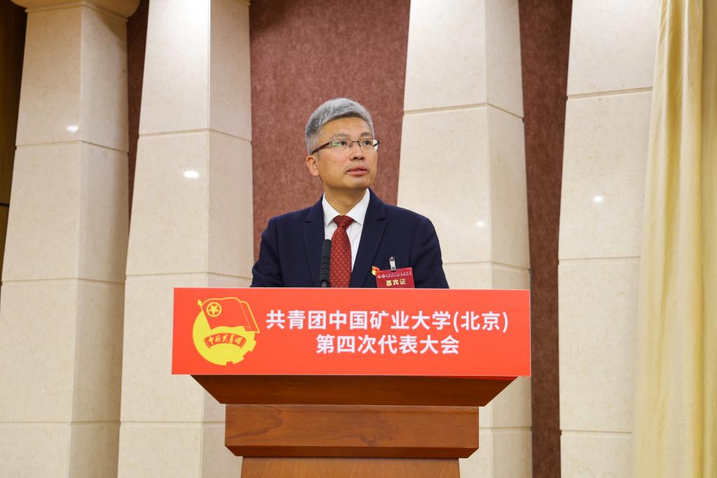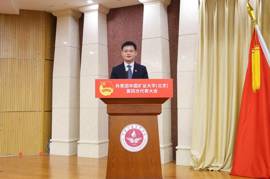 王泰鹏代表共青团北京市委向大会的召开表示热烈祝贺,对长期以来关心支持共青团工作的学校党政领导和广大教职员工表示衷心感谢。他指出,矿大共青团在社会实践、科技创新、志愿服务等领域积极作为,育人成效显著,为首都乃至国家的能源科技事业发展贡献了坚实力量。他对矿大共青团组织提出三点希望:加强理论学习,铸牢青年信仰之魂,用党的创新理论武装团员和青年,引导青年学生投身中国式现代化主战场;紧扣中心服务大局,彰显服务青年成长之力,支持团员青年在新时代首都发展中建功立业;全面加强自身建设,保持先进团组织的时代风貌,推动共青团改革向纵深发展。