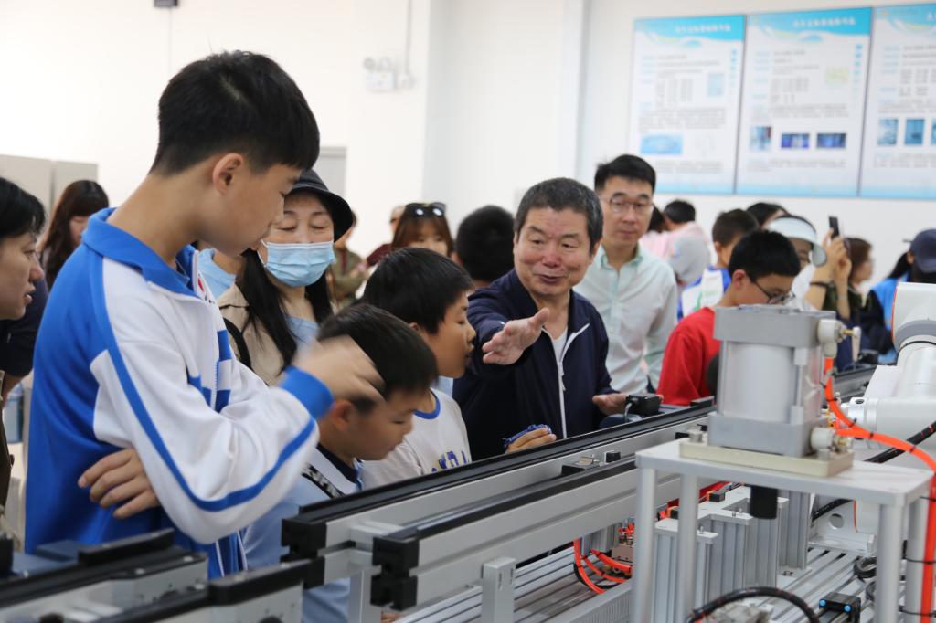 在“数行二十载,理创新未来”理学院第四届数理文化节开幕式暨游园会活动现场,小朋友们聆听了理学院院长李再兴教授关于“探索数理文化魅力,讨论思考迎接未来”的讲话,接受了一次关于数理文化的启蒙,通过活泼生动的游园活动激发了对数理知识的兴趣。在我校教师的带领和讲解下,小朋友们了解了矿大办学历史、师资力量和丰富的校园文化,在优美的校园景观中感受沙河校区建设者的巧思。随后,他们来到机械与电气工程学院煤矿大型机械设备实验室及创新实验室,观看了智能采煤工作面采煤过程,学习了井采和露天采煤的知识。在沙河高教园区矿大科技创新综合体智造创新中心,大家观看了工作人员演示激光切割、3D打印过程并亲自操作,通过机械与电气工程学院教师的认真讲解,拓展知识储备,强化了实践能力。智慧教室里,小朋友们在观看了学校庆祝中国共产党成立100周年“永远跟党走”快闪视频后倍感振奋,在歌声中深化了爱党爱国情怀,在身临其境体验大学课堂魅力的同时,也激发了孩子们对未来精彩多元的大学生活的期待。