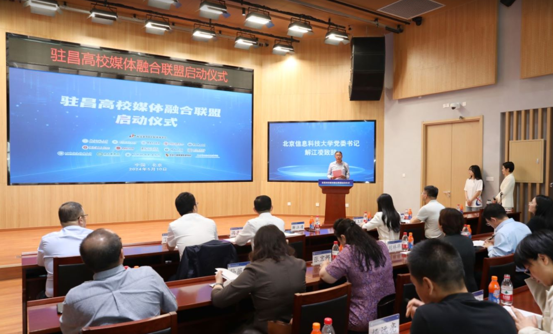 近年来,北京信息科技大学认真贯彻落实习近平总书记对宣传思想文化工作重要指示精神,坚持筑牢思想根基,坚持创新引领发展,牢固树立融媒体传播思维,推动媒体融合向纵深发展,构建了线上线下一体、内外宣传联动的立体化主流舆论格局。北京信息科技大学党委书记解江凌在致辞中表示,“去年12月,媒体融合生产技术与系统国家重点实验室数据智能创新研发基地在我校揭牌,我们立足学科优势,聚焦学科交叉融合,在推动媒体融合领域的原始创新、成果应用和转型升级上,再次迈出了坚实的步伐。学校将以‘驻昌高校媒体融合联盟’成立为契机,牢牢把握数字化、智能化发展方向,顺应网络时代新要求,发挥信息特色的鲜明优势,将新一代信息技术贯穿宣传工作的全过程,进一步深化与昌平区委宣传部、区融媒体中心及各驻昌高校的战略合作,构建起区域协同、优势互补、资源共享的区域媒体发展新格局。”