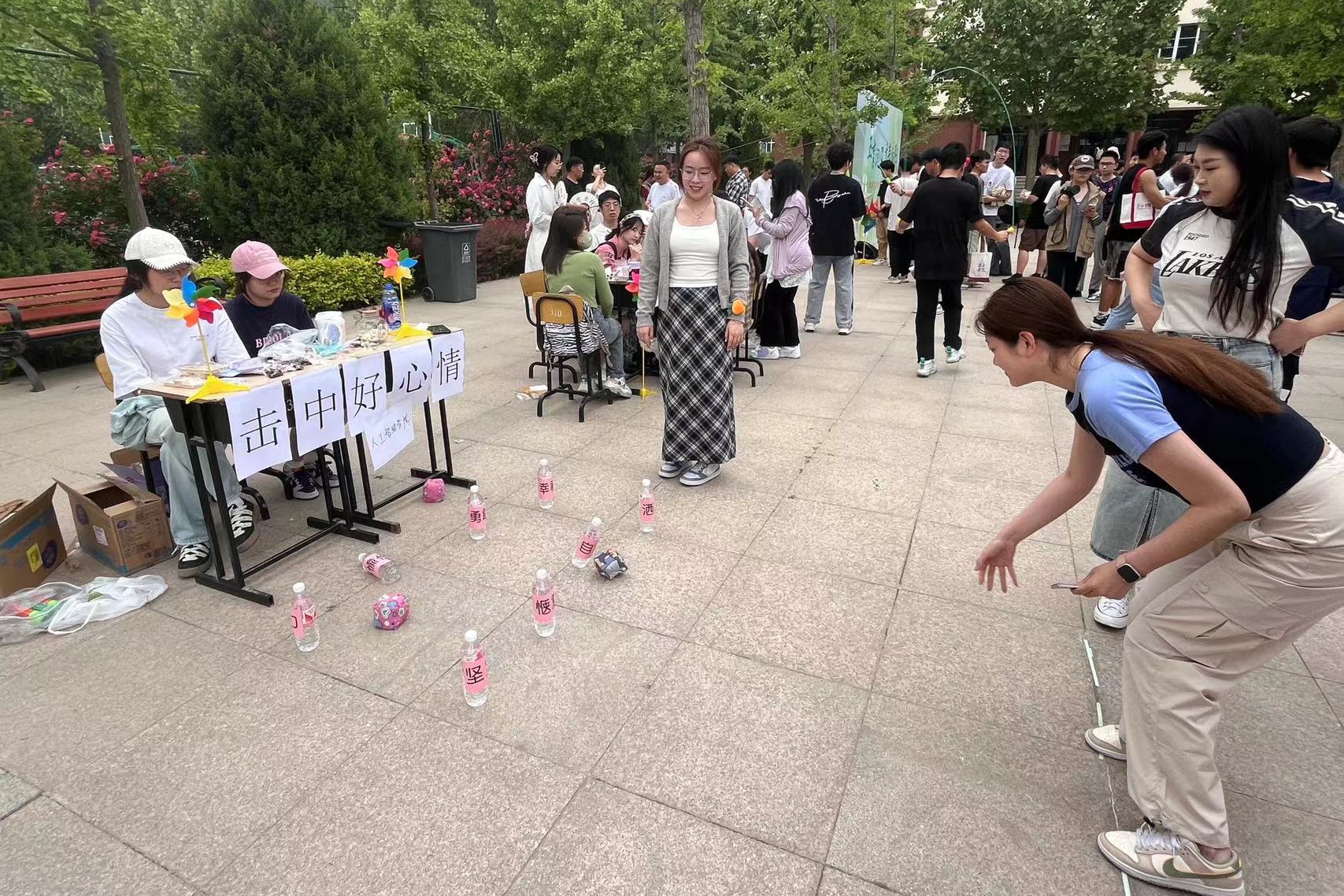 本网讯 5月10日中午,“五育润心,青春向阳”2024年大学生心理健康季活动体验日在沙河校区中心花园举行。活动旨在落实教育部等十七部门《全面加强和改进新时代学生心理健康工作专项行动计划(2023-2025)》、市委教育工委《关于优化提升北京高校学生心理健康工作的行动方案(2023-2025)》等文件要求,推动五育融合促进心理健康的理念转化为实际行动,进一步提升我校学生心理健康素养和心理健康工作实效。校党委副书记安宇、校长助理乔红兵及沙河校区管委会、学工处、保卫处、书院、学院主管领导出席活动。心理健康教育咨询中心专职教师在现场组织活动开展。各学院辅导员及沙河校区近500余名学生参加了此次活动。