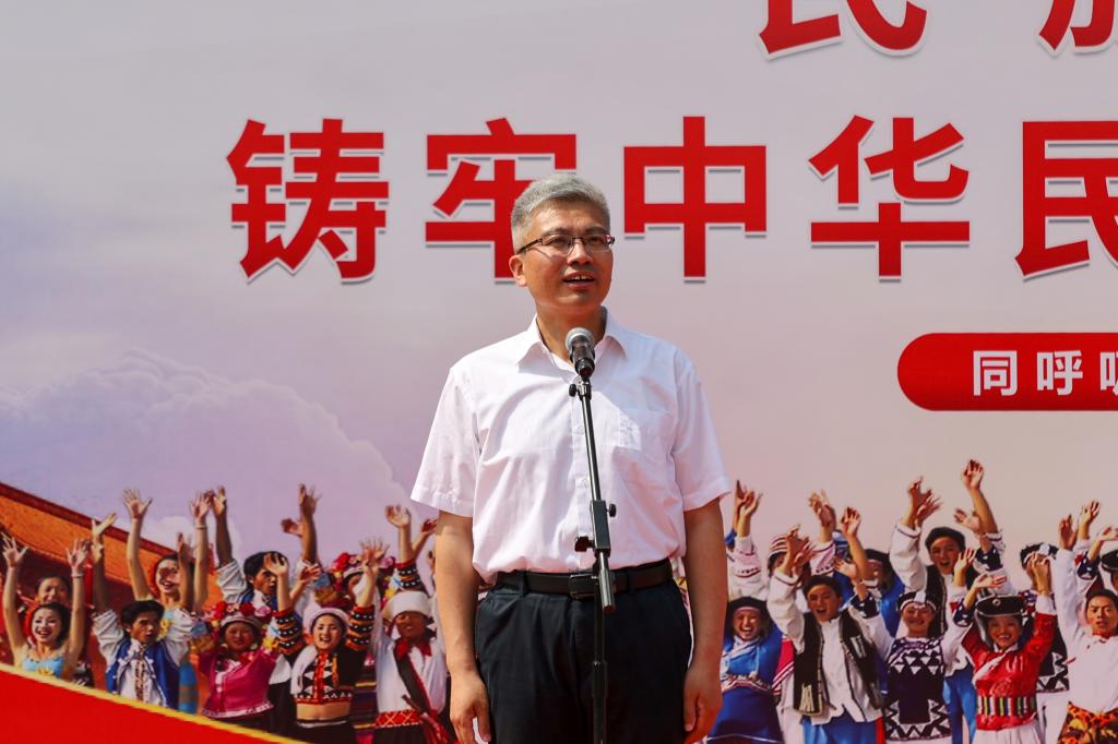 崔希民在讲话中表示,党的十八大以来,以习近平同志为核心的党中央高度重视民族工作,为实现中华民族伟大复兴的宏伟战略,提出了一系列新思想新论断新要求,形成了习近平总书记关于加强和改进民族工作的重要思想,为推进新时代党的民族工作高质量发展提供了根本遵循。学校高度重视民族团结工作,发挥能源矿业特色优势,参与国家重大战略项目,取得显著成效。学校特别注重加强少数民族学生教育、服务和引领。持续推进“思想引领”“队伍建设”“助学育人”“成长服务”四个工程建设,打造“石榴籽”工作室特色品牌,多措并举推进少数民族学生稳定就业,全面引领少数民族学生成长成才,增强少数民族学生对中华民族共同体的归属感和认同感。在矿大(北京)校园里生活的各民族师生员工,像石榴子一样紧紧团结在一起,互相关照,互相帮助,和谐幸福地学习工作生活。他希望各民族师生员工在活动中感受中华民族共同体的内涵,增强中华民族共同体意识,促进学校各民族学生交往交流交融;希望各民族师生员工弘扬爱国主义为核心的中华民族精神,厚植爱党爱国情怀,为强国建设、民族复兴伟业做出新的更大贡献。