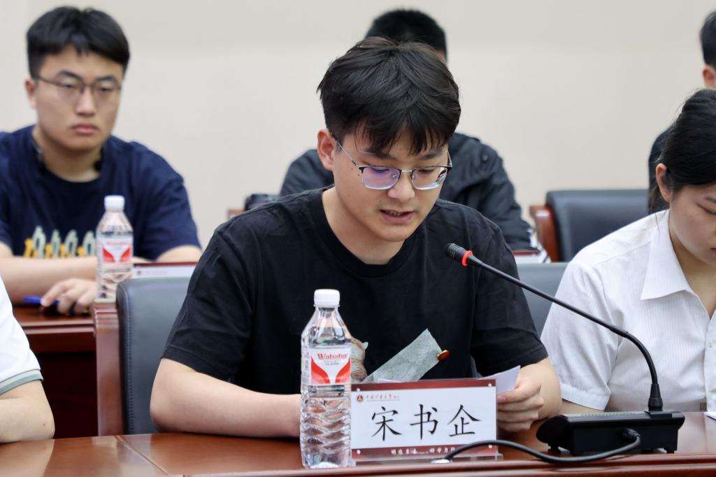 6名与会毕业生代表作了主题发言,深情感恩学校、老师们的尽心培育,畅谈在校求学的所思所感,分享继续深造或步入职场的规划与憧憬,并对学校发展献上真挚祝福。毕业生们一致表示,在新征程上要坚定理想信念,勇于砥砺奋斗,树牢廉洁意识,严守纪法规矩,在勤学、修德、明辨、笃实上下功夫,奋力书写为中国式现代化挺膺担当的青春篇章。