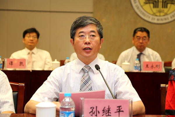 校党委书记徐孝民、校长杨仁树,中国工程院院士钱鸣高、武强