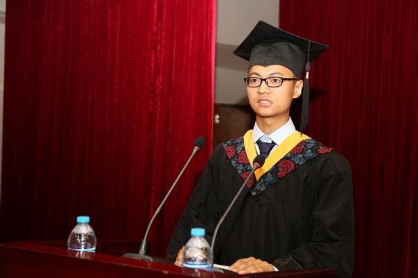教师代表、机电学院林福严教授向毕业生们临别赠言,期望同学们“讲奉献为乐,敬业爱岗,切记学海无涯,须勤奋,博取众长”,并祝愿同学们在新的人生道路上一帆风顺。学生代表、力建学院张雨蒙代表2016届全体毕业生感谢学校领导、老师四年来的悉心教导和精心栽培,并表示毕业后将继续勤奋求索、实事求是,不为外撼、不以物移,请母校放心。