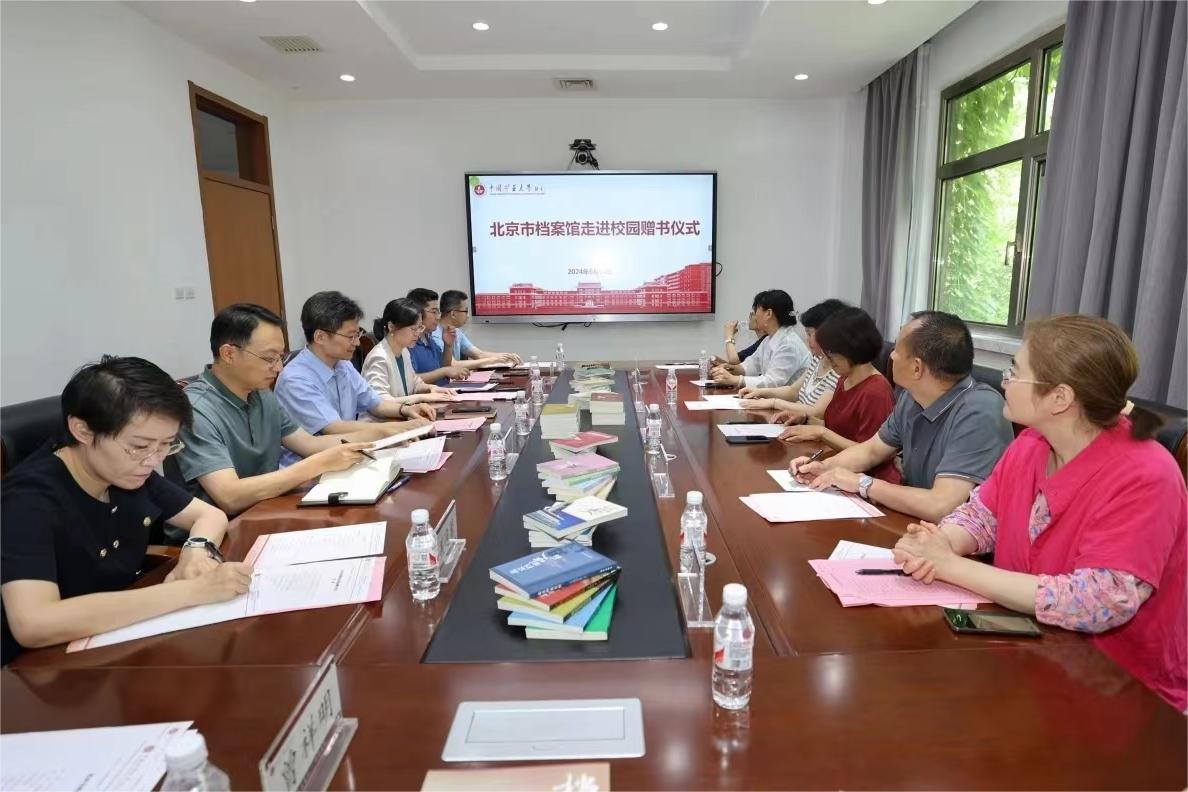 本网讯 为广泛汲取社会优质文化资源,提升档案工作水平,探索档案育人新路径,6月14日上午,北京市档案馆走进校园赠书仪式在我校1号办公楼219会议室举行。副校长谭凯、北京市档案馆副馆长王海燕等出席赠书仪式,档案馆馆长朱彤主持仪式。