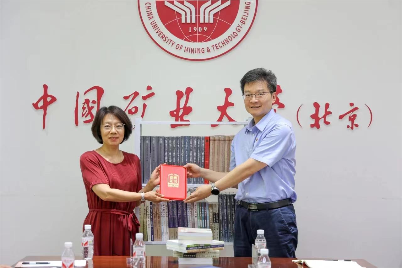 会上,谭凯代表中国矿业大学(北京)向北京市档案馆副馆长王海燕颁发捐赠赠书,并共同为捐赠图书揭幕。