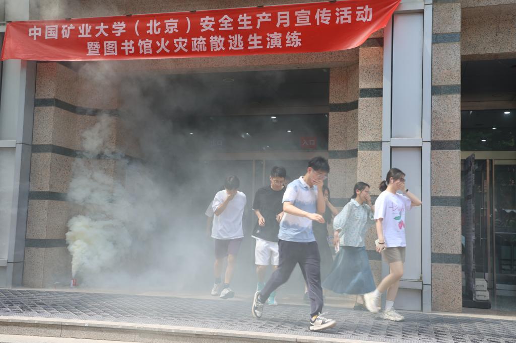 14:30演练开始,图书馆楼下霎时浓烟滚滚,消防警报立刻铃声大作,应急广播开始反复呼叫,消防中控室接警,学校微型消防站第一时间启动初期火灾处置预案。同时,在听到消防警铃、应急广播后,图书馆工作人员立即打开图书馆内所有通道,图书馆工作人员、保安员马上各就各位,在他们有条不紊地引导下,学生们捂住口鼻,俯身低姿迅速有序疏散至安全区域,整个疏散过程用时2分45秒,达到了演练预案预期效果。