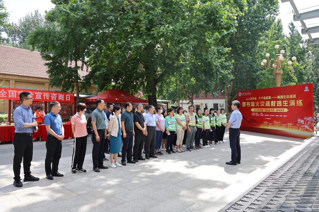 本网讯 2024年6月是全国第23个“安全生产月”。6月14日,学校以“人人讲安全,个个会应急——畅通生命通道”为主题,在图书馆开展安全生产月暨安全咨询日宣传活动。副校长谭凯出席活动,党政办公室、党委宣传部、机关党委、保卫处、学生工作处、总务处、图书馆、档案馆等部门负责人参加活动。本次活动分别设置了火灾逃生疏散演练、展板宣传、安全知识答题、应急技能培训等多项内容。