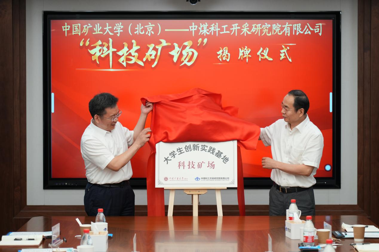 会上,校企双方签署了实践教学基地协议,并举行了“科技矿场”揭牌仪式。会后,刘波带队参观了煤炭智能开采与岩层控制全国重点实验室。