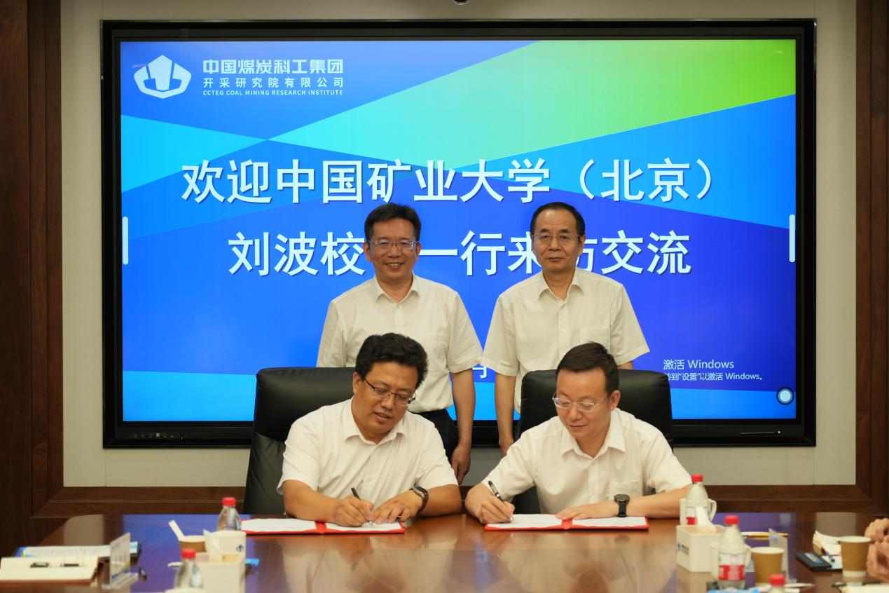 本网讯 6月18日上午,校长刘波带队赴中煤科工开采研究院有限公司走访交流,举行“科技矿场”签约暨挂牌仪式,并参观了煤炭智能开采与岩层控制全国重点实验室。中煤科工开采研究院有限公司党委书记、董事长康红普院士,副总经理吴拥政,我校副校长崔希民等出席座谈交流会。