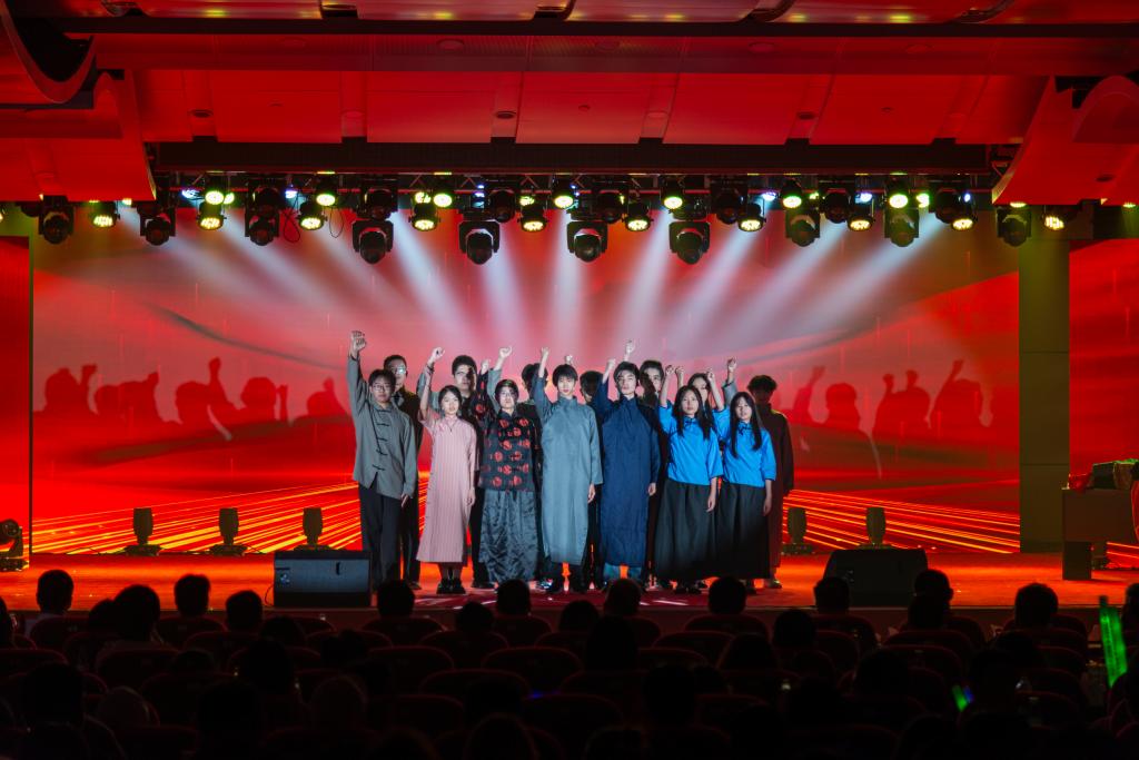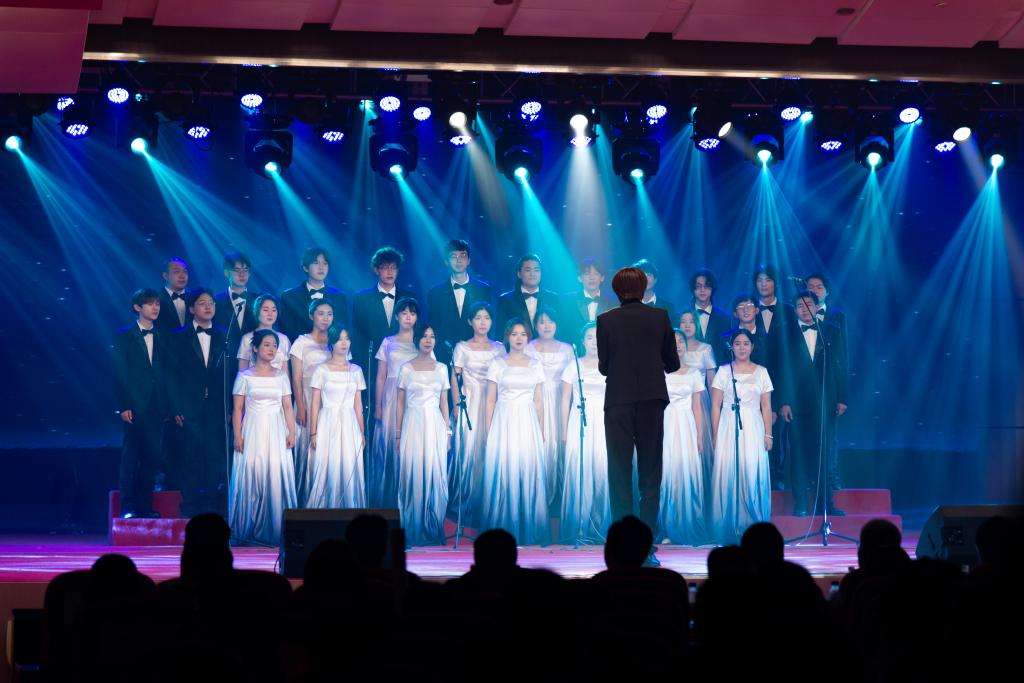 第二篇章“芳华待灼,筑梦数载青春”重温来路,同心共情。由大学生艺术团舞蹈团带来的舞蹈《水之灵》充满灵动与柔美,在她们的舞步中,我们感受水的坚韧,理解水的包容,她们的舞姿灵动而有力,每一个转身、每一个跳跃都散发着青春的活力。合唱《敕勒歌》《遇见》像是一封寄给青春的情书,让人陶醉其中,更唱出莘莘学子对美好邂逅的向往与珍惜。话剧《五四中的福中学子》由档案馆根据学校历史编写而成,生动展现了1919年福中学子们以笔为刀剑,以知识为武器,造福中华、工矿救国的使命和担当。舞蹈《老照片》用舞步带领观众一起穿梭在记忆的长廊,体会那些永恒的瞬间。