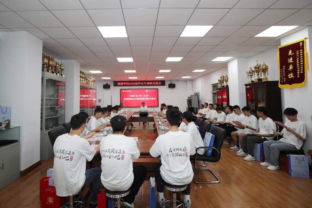 本网讯 6月21日,地球科学与测绘工程学院2024届毕业生调研交流会在综合楼249召开。校长刘波出席会议并与毕业生代表进行了深入交流。党政办公室副主任朱家骏,地测学院领导班子、各系系主任和毕业年级辅导员参加了调研交流会。地测学院党委书记李晶主持会议。