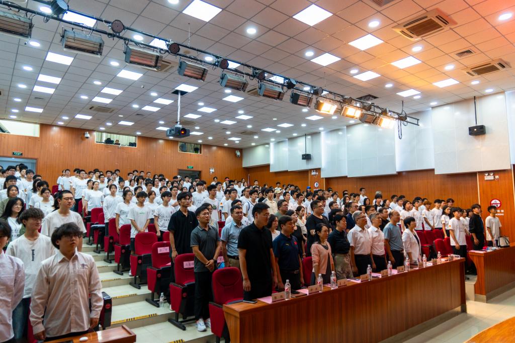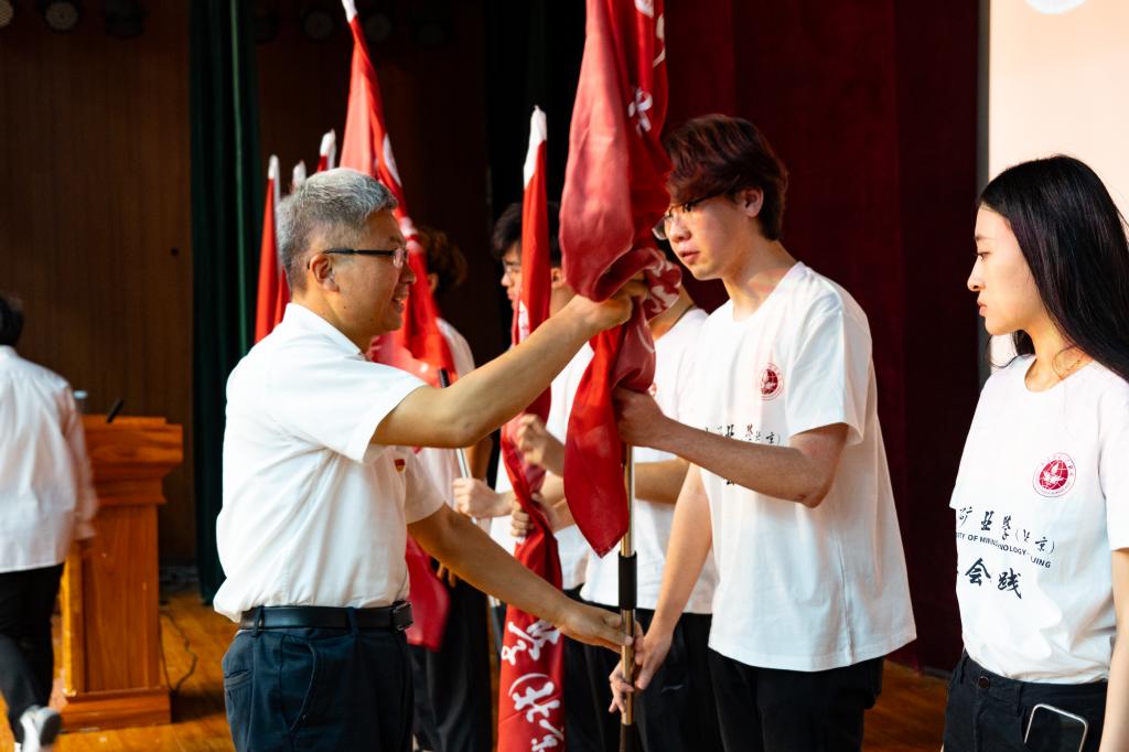 安宇为即将出征的各学院实践团队学生代表授旗。党委学生工作部部长赵麟宣读了学校2024年暑期社会实践校级重点团队名单。校团委书记孙铭晗介绍了2024年暑期社会实践活动的开展情况。