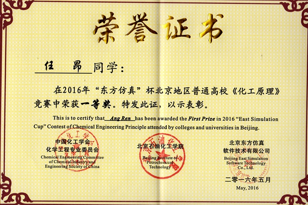 本网讯5月28日,第四届“东方仿真”杯北京地区普通高校《化工原理》竞赛颁奖典礼在北京石油化工学院举行,我校化工专业大三学生在本次比赛中表现优异,2人获得一等奖,6人获得二等奖,11人获得三等奖。我校代表队还获得团体二等奖。