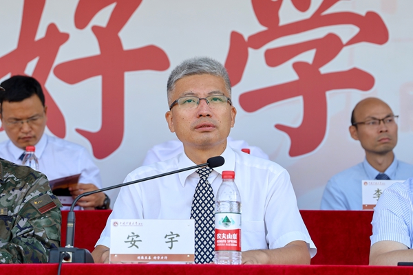 校长刘波向承训部队赠送锦旗并讲话,他代表学校,对武警北京总队机动第三支队的大力支持、全体教官们辛勤付出、军训团工作人员的精心组织和周密保障致以诚挚的感谢,对顺利完成此次军事技能训练的2208名2023级本科生同学和表现突出的先进集体、先进个人致以最真诚的祝贺。充分肯定了教官、指导员和军训工作人员的辛勤付出,高度评价了同学们在军训成果汇报中的优异表现。同学们经受住了心理、体能和意志等诸多方面的考验,彰显了矿大学子敢吃苦、肯担当的优秀品质,他对大家提出三点希望:一是发扬拼搏精神,砥砺坚韧不拔、勇往直前的良好品质;二是增强纪律观念,营造积极进取、健康向上的校园氛围;三是勇担时代重任,厚植青春向党、强国有我的家国情怀。